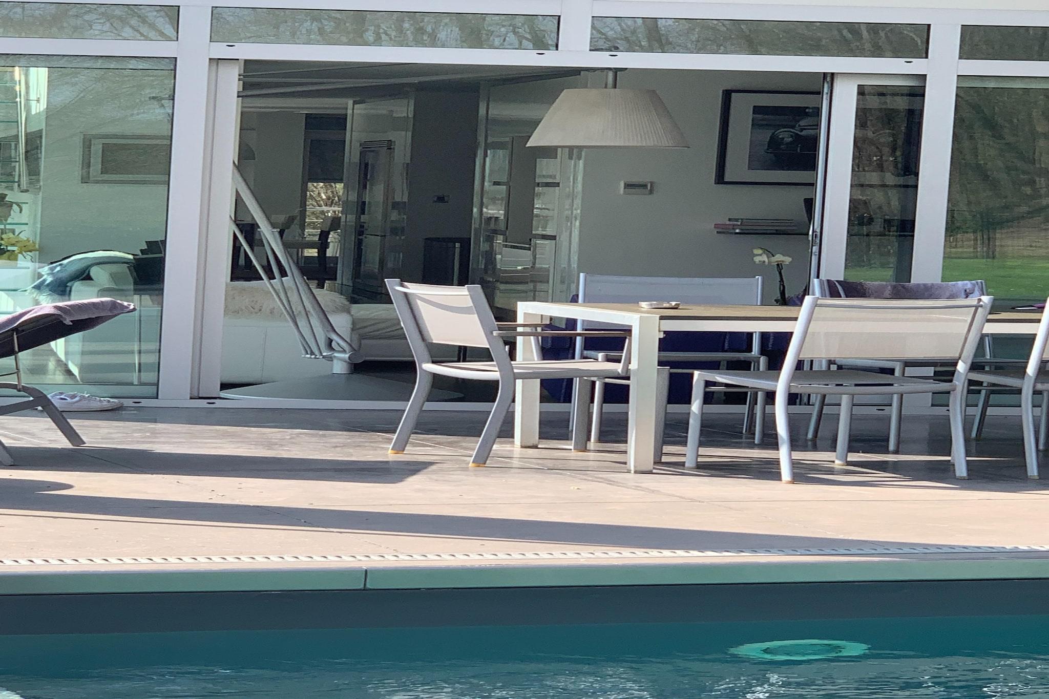 Parterre: (Aufenthaltsraum(Esstisch(6 Personen), Kaminofen, Sitzecke), Aufenthaltsraum(TV(smart TV), Esstisch, Sitzecke), Esszimmer(Esstisch(6 Personen)), Küche(Wasserkocher, Kochendwasserhahn, Toaster, Kochherd, Dunstabzugshaube, Kaffeemaschine, Espressomaschine, Backofen, Mikrowelle, Spülmaschine, Kühlschrank, Tiefkühlschrank, Mixer, Wine glasses), Badezimmer(Dusche(ebenerdige Dusche)), Toilette(Waschbecken), Waschraum) In der 1. Etage: (Schlafzimmer(Doppelbett(160 x 200 cm), TV(smart TV), Sitzecke), Schlafzimmer(Doppelbett(160 x 200 cm), Sitzecke, Babybett), Schlafzimmer(Doppelbett(160 x 200 cm), Sitzecke), Badezimmer(Badewanne, Dusche(ebenerdige Dusche), Waschbecken, Toilette, Urinal), Badezimmer(Badewanne mit Dusche, Waschbecken, Toilette), Badezimmer(Dusche, Waschbecken, Toilette), Ruheraum(TV, Esstisch)) Souterrain: (Spielzimmer(Spielgeräte, Tischfußball, Billard), Garage, Fahrradabstellraum, Ladestation für Elektroautos) Whirlwanne, Balkon, Balkon oder Terrasse, Terrasse(überdacht), Garten, Gartenmöbel, Grill(Holzkohle), Parkplatz, Pool(alleinige Nutzung, im Garten, erwärmt, 8 x 4 m., geöffnet von Mai bis einschließlich Sep), Gartenlounge