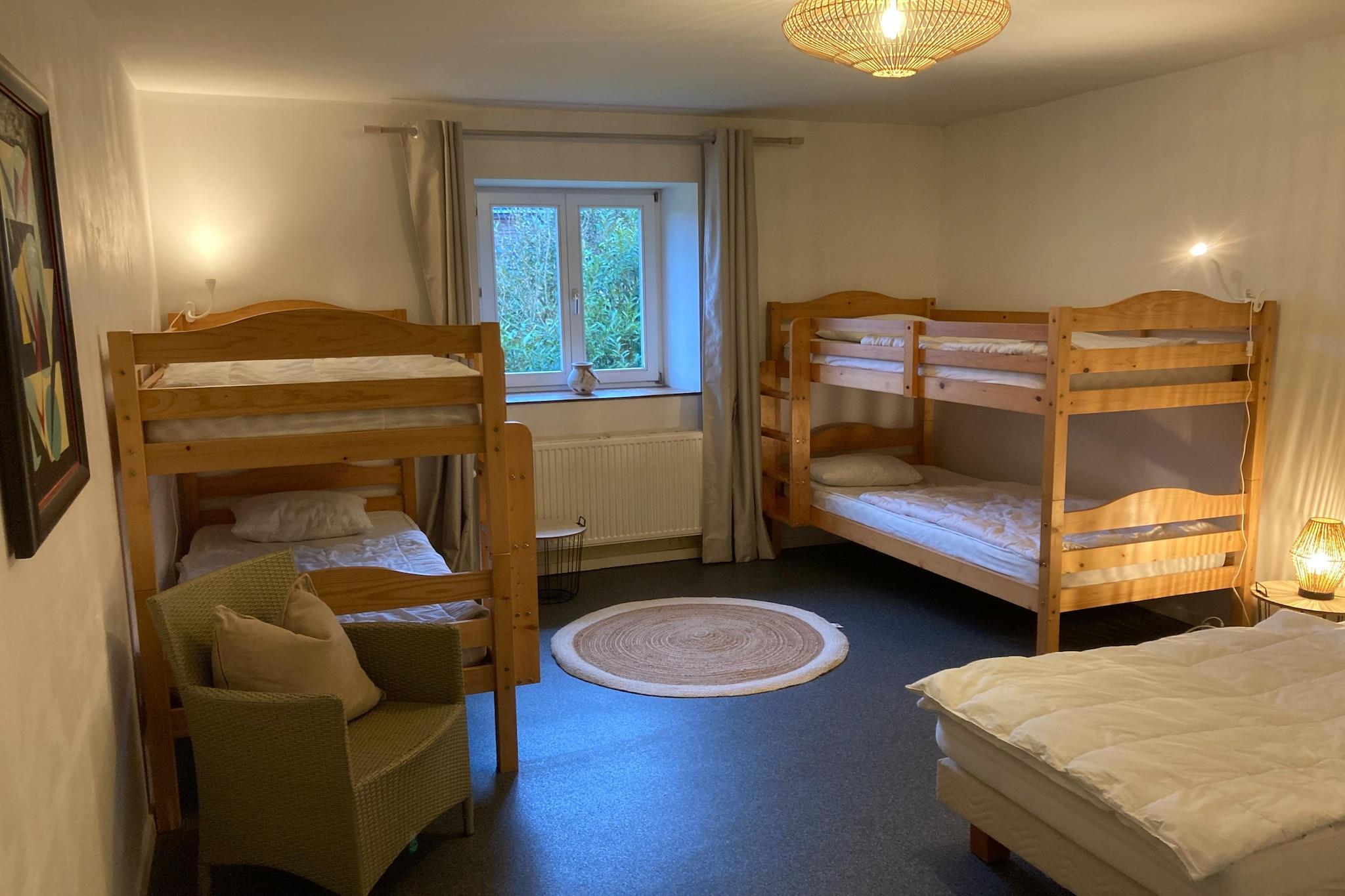 Parterre: (offene Küche(Kochherd(4 Kochplatten, Ceranfeld), 2x Kaffeemaschine(Filter, pads), Backofen, Mikrowelle, Spülmaschine, Kühl-/Gefrierkombination), Wohn/Esszimmer(TV(Kabel, internationale TV-Kanäle), Herd(Holz), DVD-Spieler, Stereoanlage, Hochstuhl), Toilette(Waschbecken), Waschraum(Trockner, Waschmaschine), Spielzimmer(Tischfußball)) In der 1. Etage: (Schlafzimmer(3x Einzelbett), Schlafzimmer(3x Einzelbett), Schlafzimmer(Einzelbett, 2x Etagenbett), Schlafzimmer(Doppelbett, Kinderbett), Badezimmer(Whirlwanne, Massagedusche, 2x Waschbecken, Toilette)) In der 2. Etage: (Ruheraum(Sauna), Dusche) Nebengebäude: (Tischfußball, Billard) Heizung(Zentral), Innenhof, Terrasse(überdacht), Garten(umzäunt), Gartenmöbel, Grill, Parkplatz