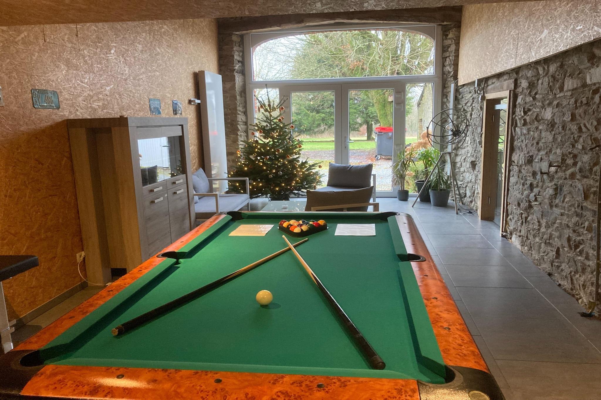 Im charmanten Dorf Sourbrodt, im Herzen des Naturparks Hohes Venn, empfängt dieses moderne und komfortable Ferienhaus bis zu 13 Personen in 4 Schlafzimmern. Perfekt für Familien und Freundesgruppen, vereint es Entspannung und Unterhaltung mit einer privaten Sauna, Billard, Tischfußball und Tischtennis. Draußen erwartet Sie ein großer, komplett eingezäunter Garten – ideal für Kinder und Aktivitäten im Freien. Abends sorgt die Feuerschale für gemütliche Momente und unvergessliche Abende am Feuer. Eine große Terrasse mit Gartenmöbeln und Grill vervollständigt den Außenbereich für gesellige Mahlzeiten im Freien. Dieses Haus ist der perfekte Ausgangspunkt, um die Schätze der Region zu entdecken: - die legendäre Rennstrecke Spa-Francorchamps, - die Seen von Robertville und Bütgenbach zum Schwimmen, Tretbootfahren oder Kajakfahren, - das spektakuläre Schloss Reinhardstein, - die Museen des Zweiten Weltkriegs in Bastogne, - unzählige Wanderwege, Radwege und RAVeL-Strecken, - die authentischen Dörfer Malmedy, Stavelot und Monschau an der deutschen Grenze, - sowie die lokalen Restaurants und Brauereien, berühmt für ihre Gastronomie und handwerklichen Biere. Ob Natur, Sport, Kultur oder einfach Ruhe – dieses Haus ist der ideale Ort für einen unvergesslichen Aufenthalt.