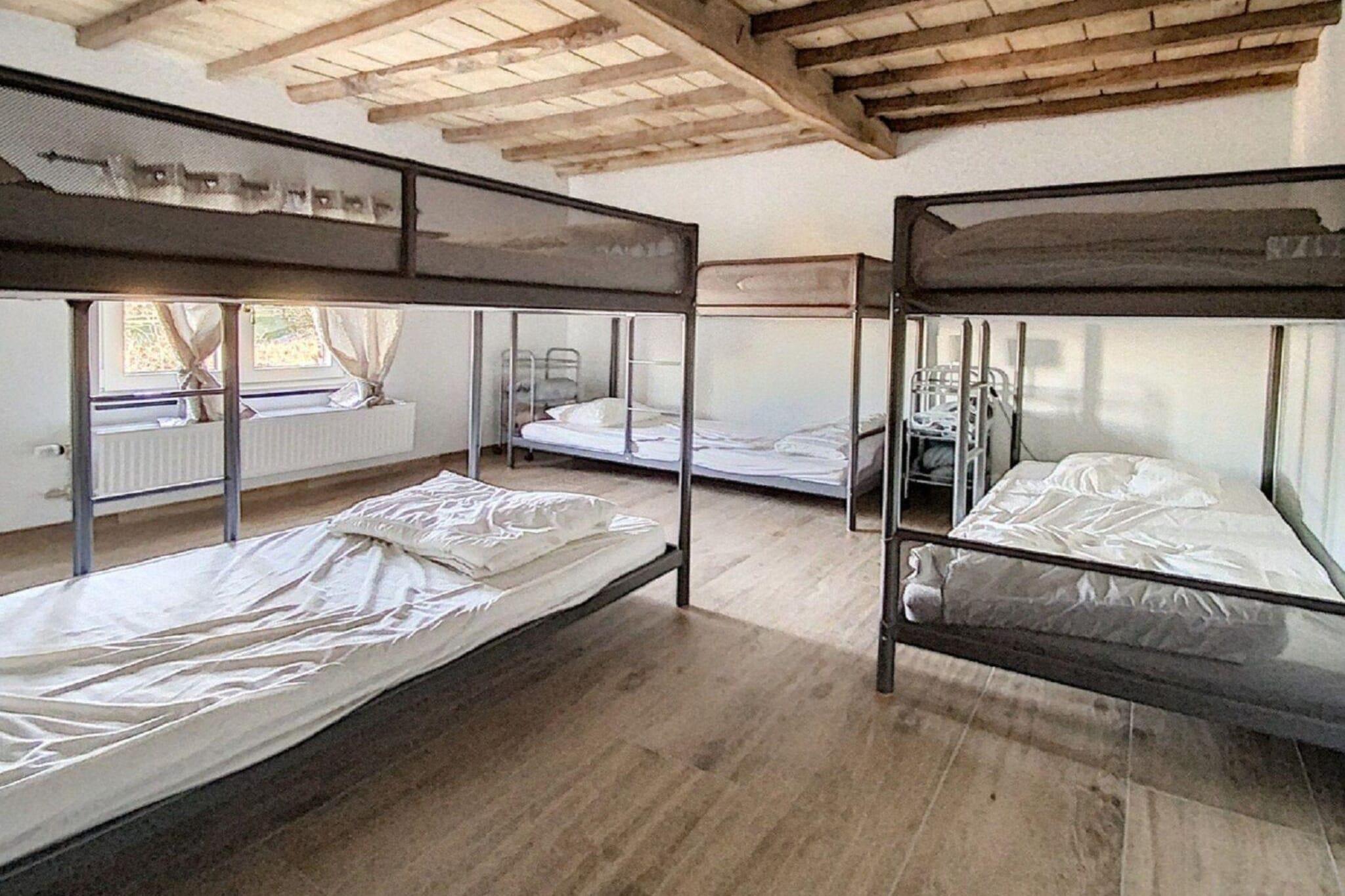 Parterre: (Eingangshalle, Schlafzimmer mit Badezimmer(Doppelbett(Doppelbettdecke, 160 x 200 cm), Dekokamin, Dusche, Waschbecken), Schlafzimmer mit Badezimmer(Doppelbett(Doppelbettdecke, 160 x 200 cm), Dekokamin, Dusche, Waschbecken), Schlafzimmer mit Badezimmer(Doppelbett(Doppelbettdecke, 160 x 200 cm), Dekokamin, Dusche, Waschbecken), Sanitärraum(Toilette), Waschraum(Trockner, Waschmaschine)) In der 1. Etage: (Aufenthaltsraum(TV(Flatscreen, digital), Esstisch, Dekokamin, Herd(Holz), Blu-ray-Player, Bar, Wasserkocher, Espressomaschine, Kühl-/Gefrierkombination, Tischfußball, Billard), Esszimmer(Esstisch(14 Personen), Hochstuhl), offene Küche(Wasserkocher, Toaster, Kochherd(4 Kochplatten, Induktion), Dunstabzugshaube, Kaffeemaschine, Backofen(Grillofen), Mikrowelle, Spülmaschine, Kühl-/Gefrierkombination, Stabmixer), Schlafzimmer mit Badezimmer(Doppelbett(Doppelbettdecke, 160 x 200 cm), Badewanne, Babybett, Waschbecken, Toilette)) In der 2. Etage: (Schlafzimmer mit Badezimmer(3x Etagenbett(Bettdecke, 90 x 200 cm), Dusche, Waschbecken, Toilette)) Keller: (Schlafnische, Terrasse(alleinige Nutzung, überdacht, 50 m2), Terrasse(alleinige Nutzung, überdacht, 50 m2), Fahrradabstellraum, Gartenmöbel, Liegen, Tischtennisplatte) Garten(alleinige Nutzung, angelegt), Grill(Holzkohle), Parkplatz, Boulebahn, Spielgeräte, Schaukel
