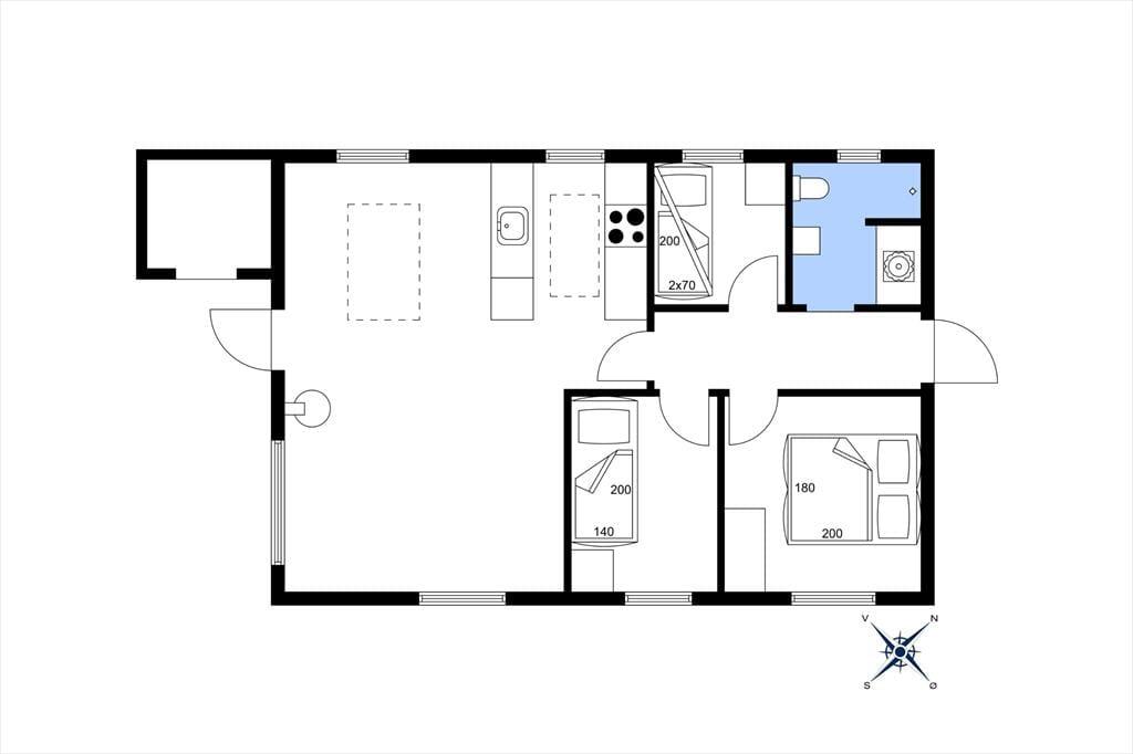 Verteilt auf 78 m² bietet das Ferienhaus insgesamt drei Schlafzimmer, zwei mit Doppelbett und eins mit Etagenbett, ein schönes Badezimmer, Flur sowie einen großen Wohnküchenbereich mit Dachfenstern, die für tolle Lichtverhältnisse sorgen, in dem Sie sich am meisten aufhalten. Hier ist es schön, ordentlich und gemütlich!