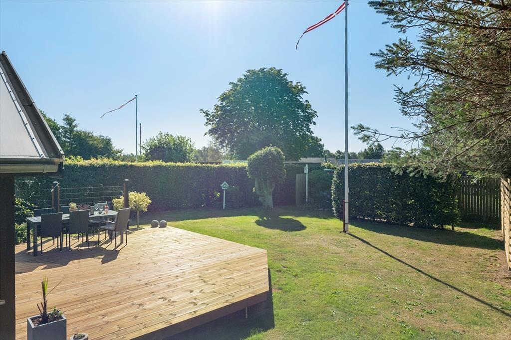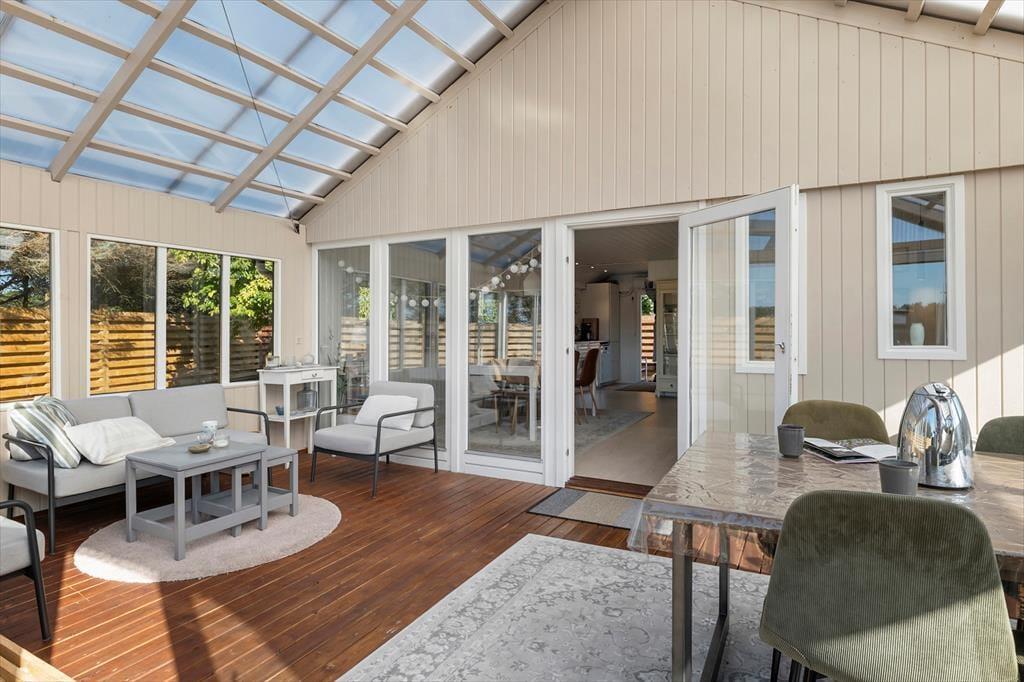 Das Grundstück ist 765 m² groß und gut von hohen Bäumen und Randbepflanzung umgeben. Hier haben Sie viel Privatsphäre, und es gibt viel Platz zum Toben auf der großen Rasenfläche, ob es nun Fußball, Wikingerschach oder etwas ganz anderes ist. Sie können sich auch einfach ins grüne Gras legen und die Sonne und die frische Luft genießen. Die gemütliche Terrasse ist ein wunderbarer Ort, um Mahlzeiten im Freien in der grünen und stimmungsvollen Kulisse zu servieren. Der Grill steht bereit, um angezündet zu werden, wenn der Tag zu Ende geht – ein gut zubereitetes Abendessen unter den Sternen bringt zusätzliche Punkte auf das Wohlfühlkonto.