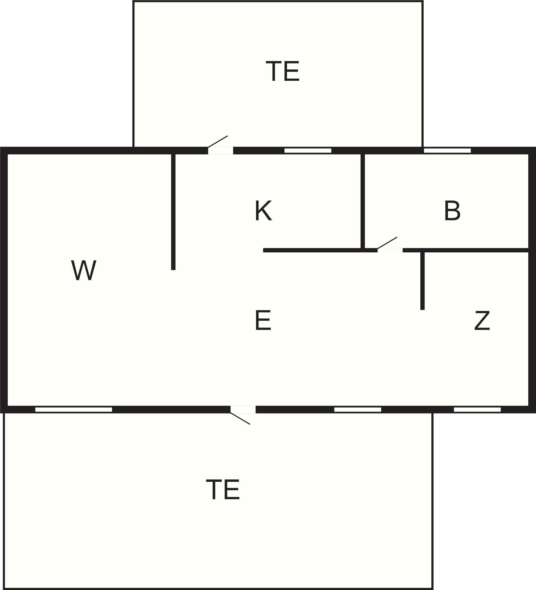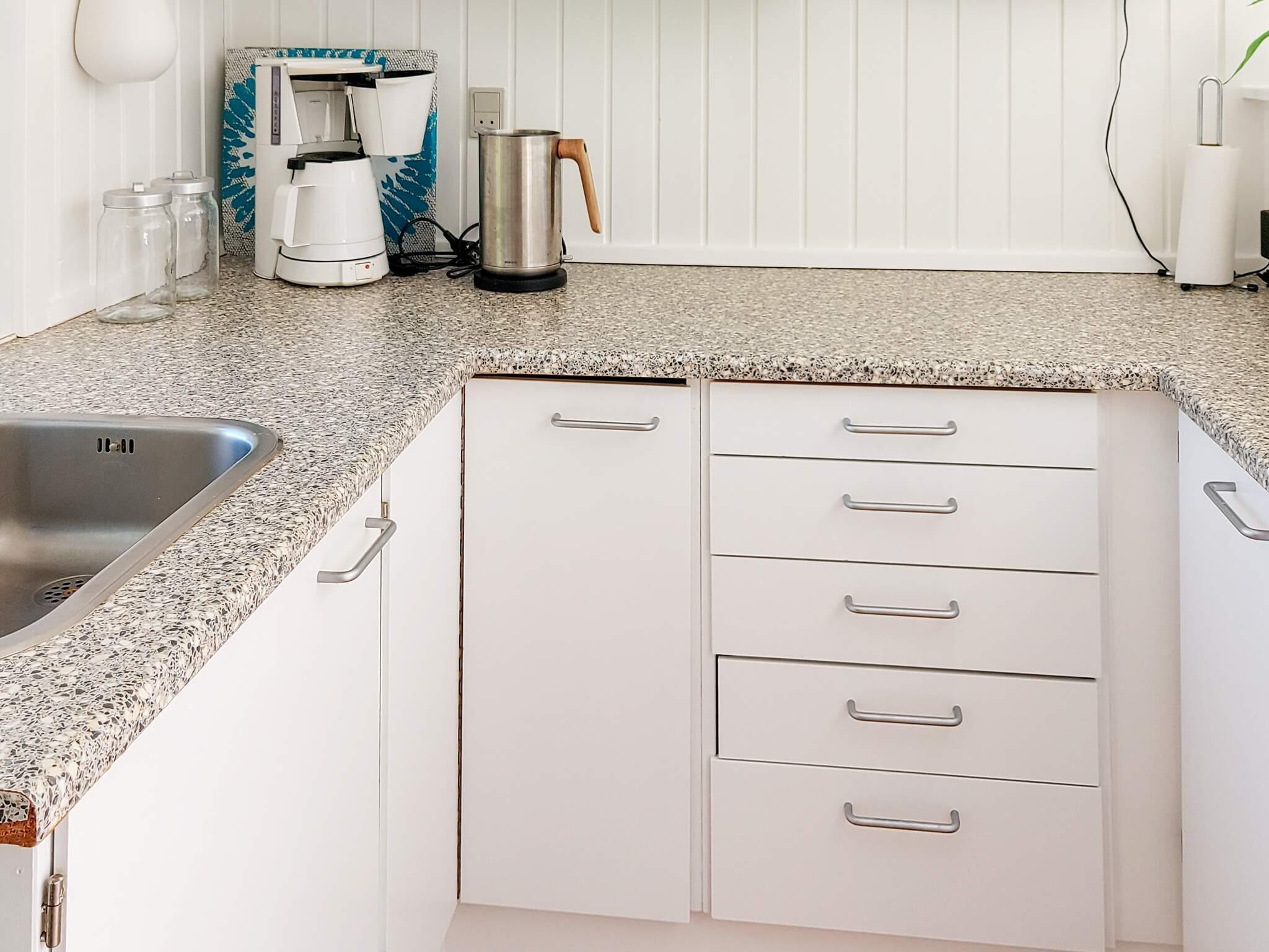 Im Haus helles Wohnzimmer mit Holzofen und doppelter Schlafcouch, in offener Verbindung zum Esszimmer und mit Zugang zur Terrasse. Im Anschluss daran abgeschirmter Schlafbereich (ohne Zimmertür) mit einem Etagenbett mit doppelter Liegefläche unten und Einzelkoje darüber. Von der Küche aus hat man ebenfalls Zugang zur Terrasse. Außerdem Bad mit Dusche und WC. Das Haus liegt auf einem schönen Grundstück mit Platz zum Entspannen und Spielen.