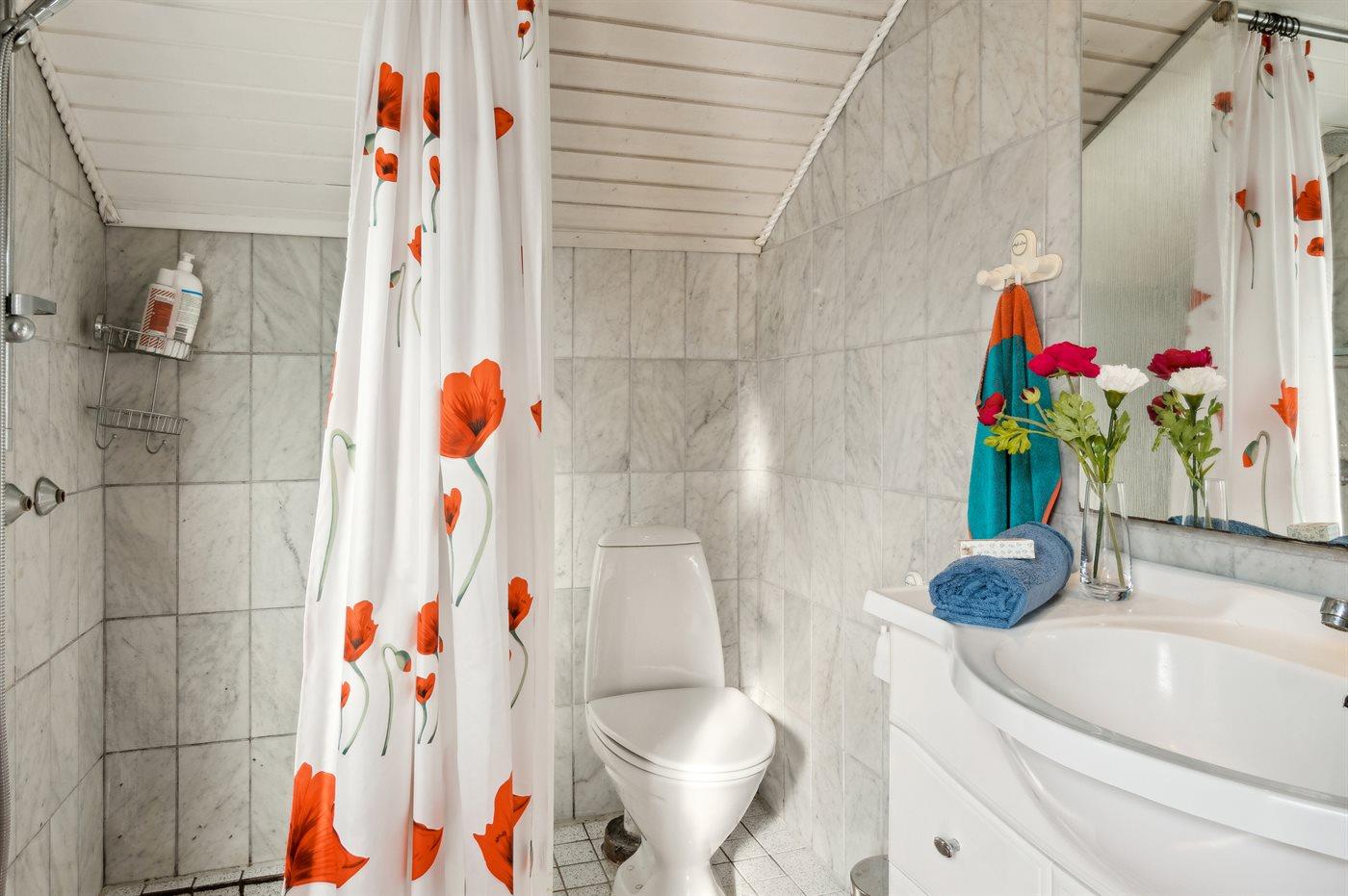 Es gibt 1 Badezimmer mit Duschnische und 1 Toilette.