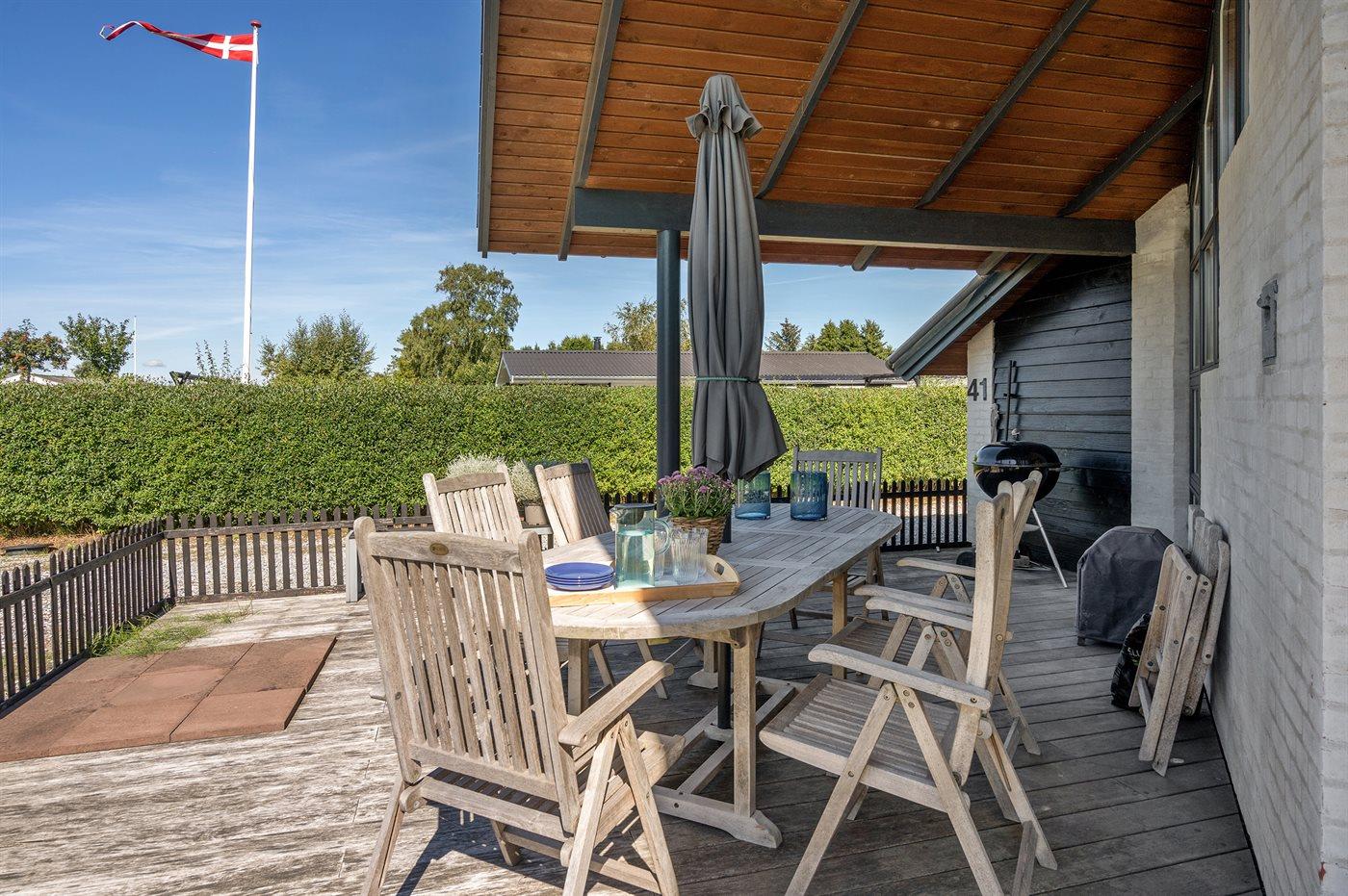Die Ferienunterkunft liegt auf einem 823 m² großen Gartengrundstück. Die Entfernung zum Meer beträgt 350 m. Die Entfernung zum Fjord beträgt 12200 m. Die nächste Einkaufsmöglichkeit liegt 1150 m entfernt. In einem Abstand von 15800 m gibt es einen Golfplatz. Es steht ein offenes Terrassenareal zur Verfügung. Außerdem gibt es überdachte Terrasse. Trampolin. Es steht ein Grill zur Verfügung. Parkplatz auf dem Grundstück.