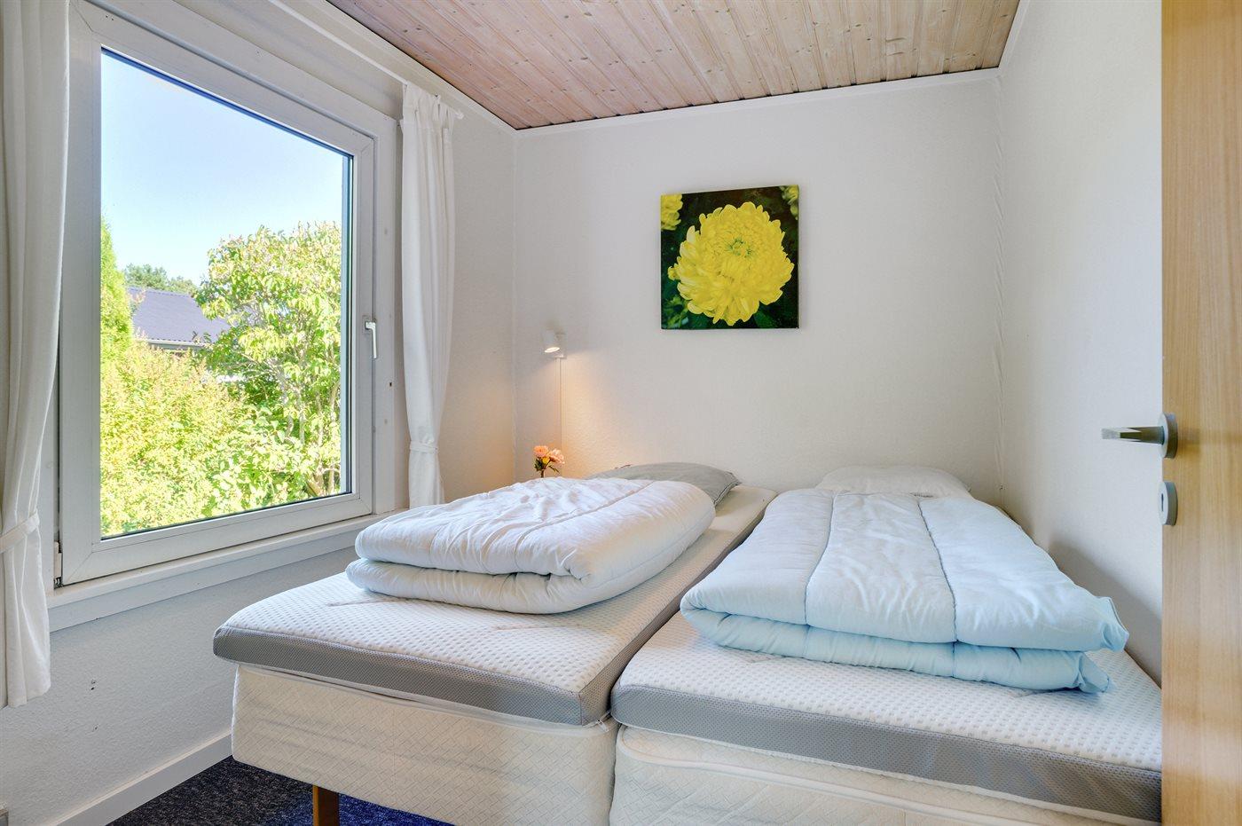 Die Schlafplätze verteilen sich auf 2 Schlafräume. 2 Schlafplätze in einem Doppelbett. 2 Schlafplätze in Einzelbetten.