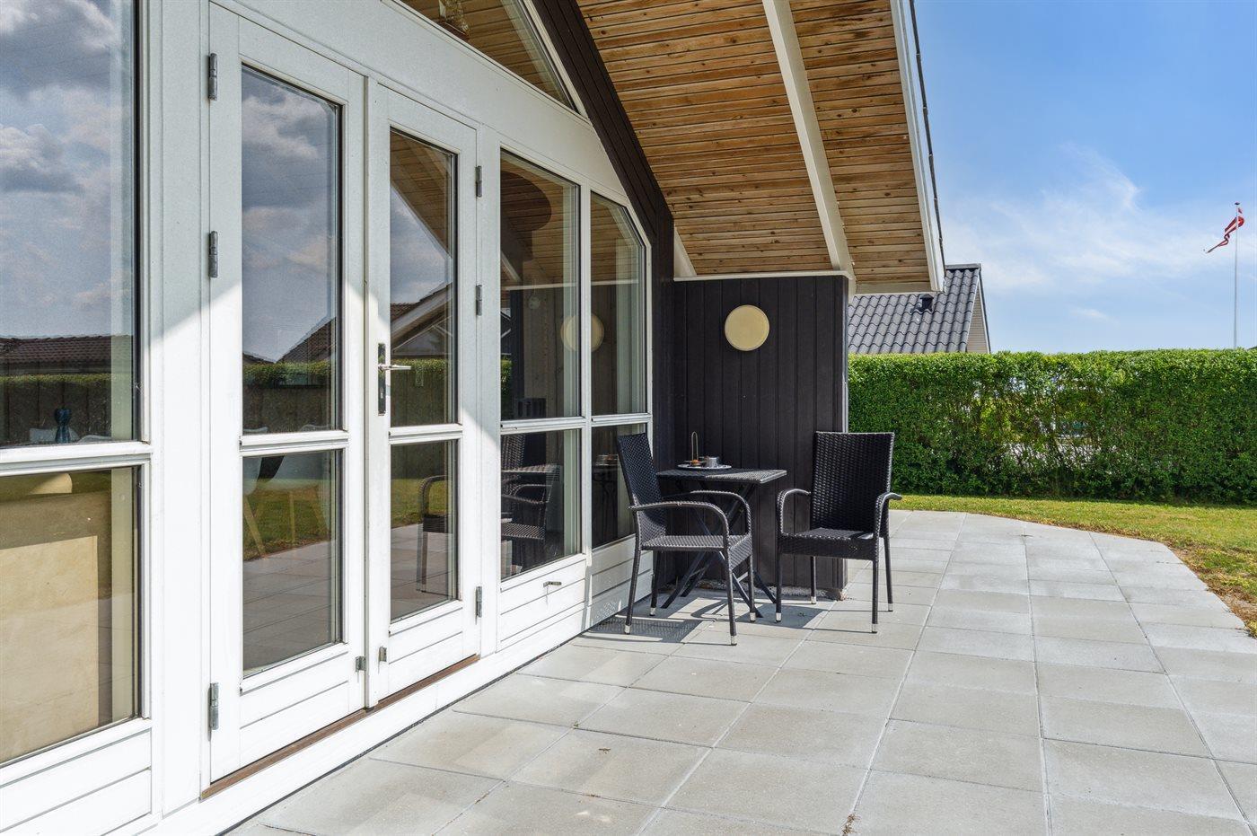 Die Ferienunterkunft liegt auf einem 2152 m² großen Gartengrundstück. Die Entfernung zum Meer beträgt 150 m. Die Entfernung zum Fjord beträgt 11100 m. Die nächste Einkaufsmöglichkeit liegt 300 m entfernt. In einem Abstand von 14800 m gibt es einen Golfplatz. Es steht ein offenes Terrassenareal zur Verfügung. Es steht ein Grill zur Verfügung. Parkplatz auf dem Grundstück.