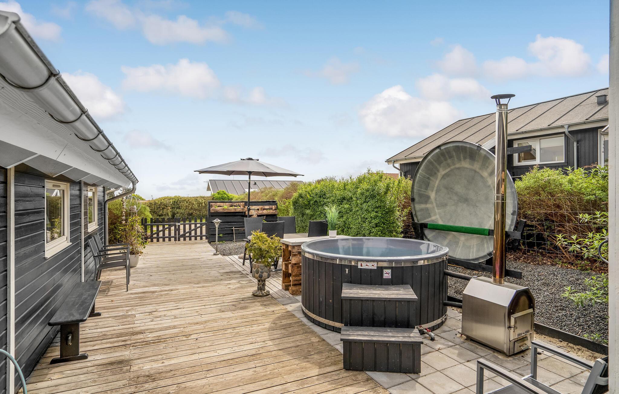 Modernes Ferienhaus mit Meerblick, holzbefeuerter Badetonne und Strandnähe in Øster Hurup, Dänemark.