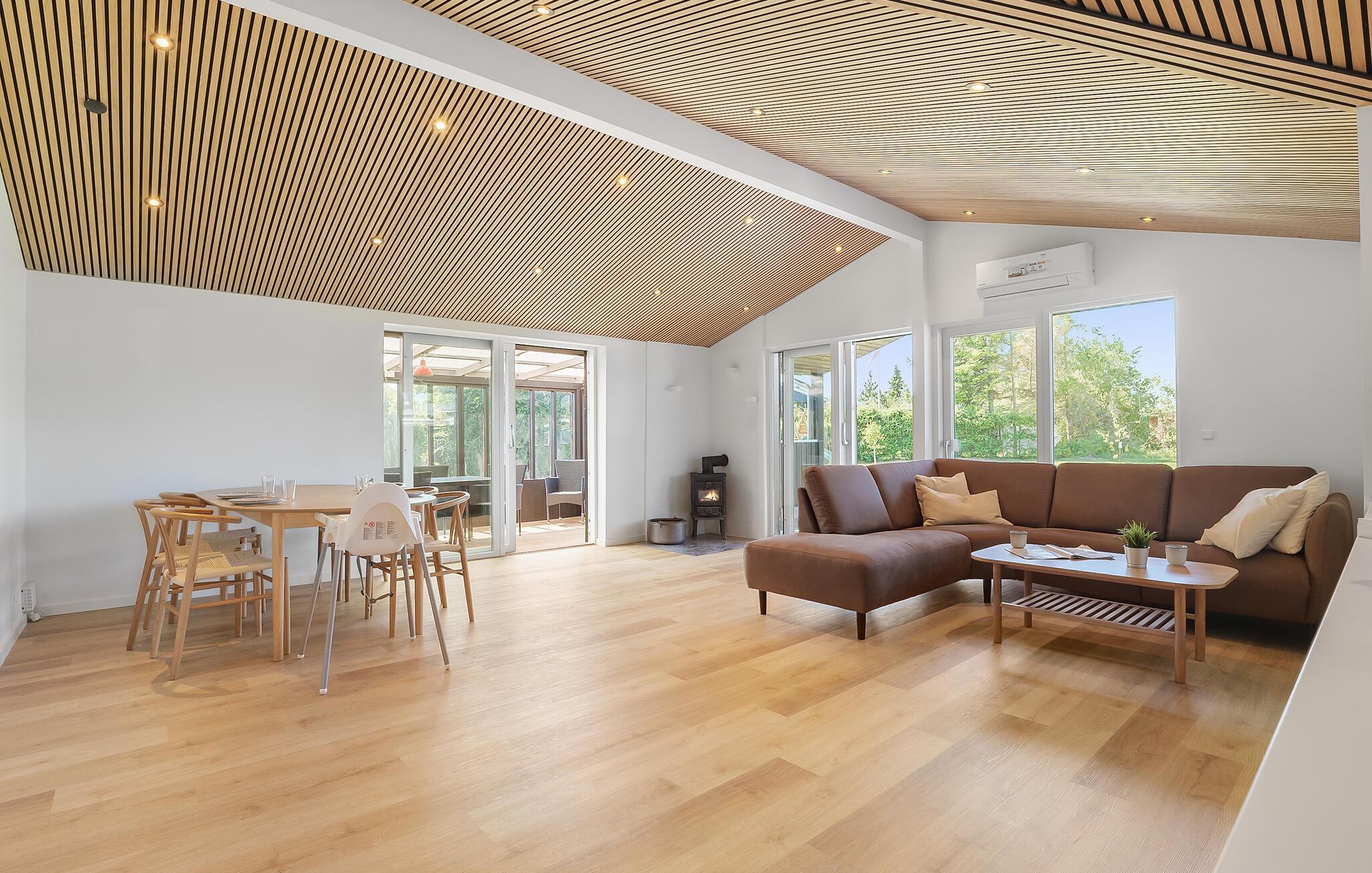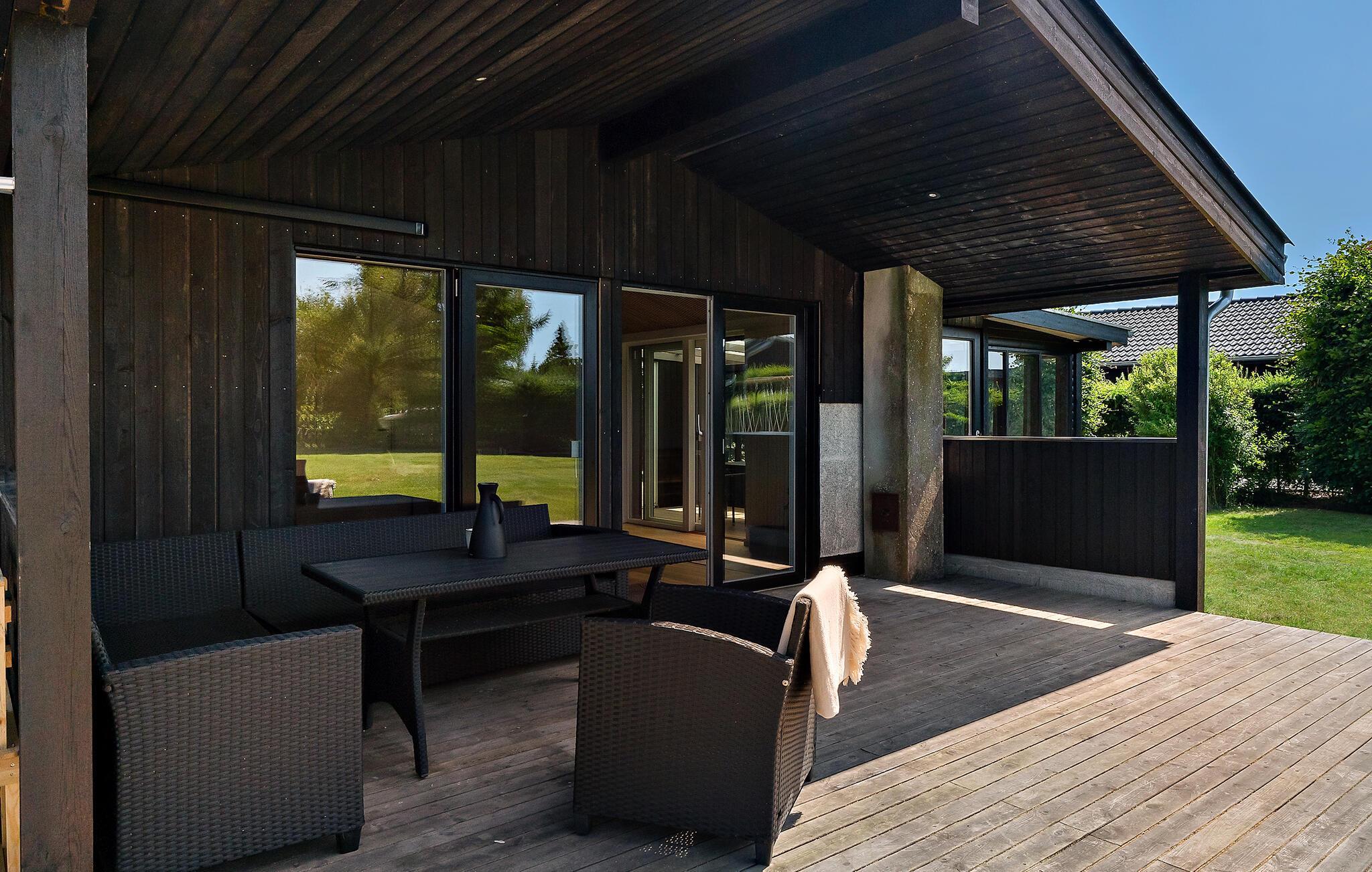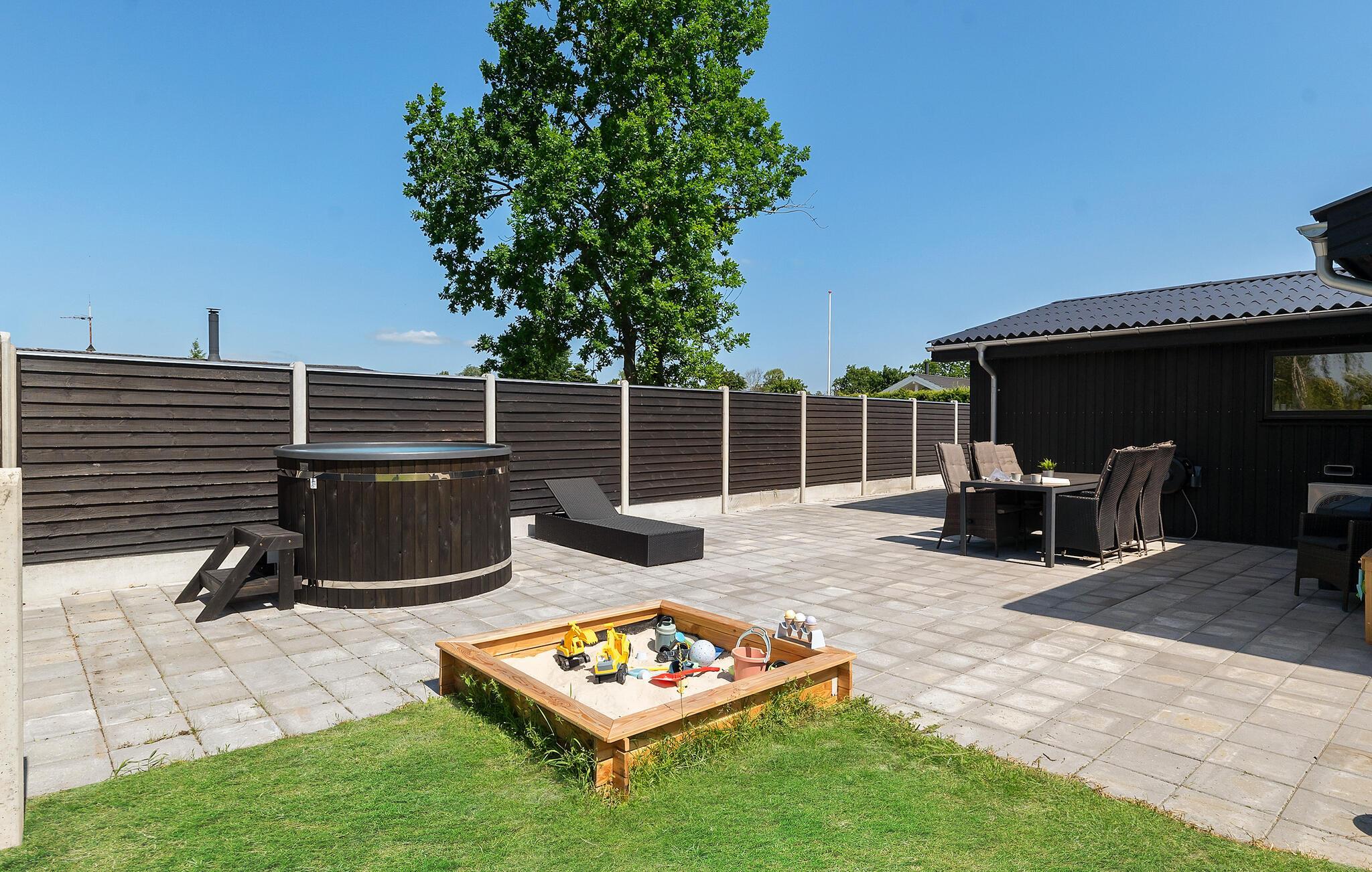 Dieses charmante Ferienhaus nahe Øster Hurup Strand lädt Sie mit seiner harmonischen Einrichtung und lichtdurchfluteten Räumen zu einem entspannten Aufenthalt ein. Die geschmackvolle, klassische Einrichtung in warmen Farben sorgt für eine angenehme Atmosphäre. Vom Wohnzimmer aus gelangen Sie direkt auf die überdachte Terrasse, die mit komfortablen Gartenmöbeln ausgestattet ist. Im sichtgeschützten Wellnessbereich mit Finnischem Holzbad und Sonnenliegen können Sie die Seele baumeln lassen, während Kinder sicher auf dem großzügigen Grundstück spielen.