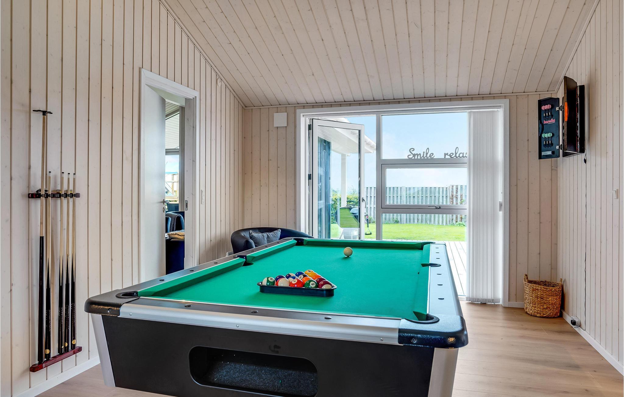 Das Haus bietet viele Einrichtungen und niemand muss sich während des Aufenthalts langweilen, da es Aktivitätsmöglichkeiten für Kinder und Erwachsene gibt. Der Aktivitätsraum des Hauses bietet sowohl Billard als auch Tischtennis. Die Möbel und die Ausstattung sind wunderschön zusammengestellt und das Wohnzimmer und der Wohnraum wirken hell, geräumig und einladend. Vom Wohnzimmer aus haben Sie Zugang zu einer großen Südwestterrasse, auf der gute Gartenmöbel und nicht zuletzt das große Wildnisbad zu viel Entspannung und gemütlichen Momenten einladen. Das Haus bietet viel Platz für zwei Familien oder drei Generationen, die viel Zeit miteinander im Urlaub verbringen möchten.