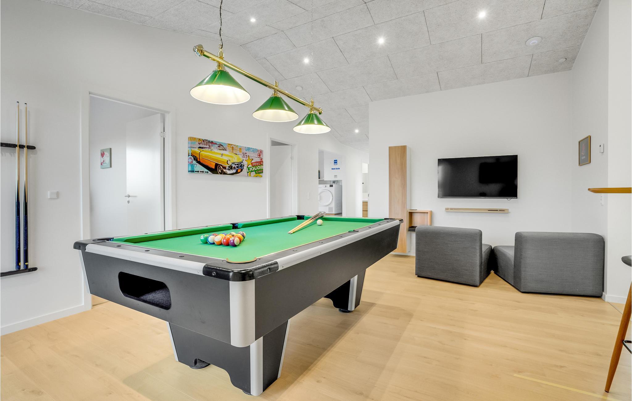 Hell und ansprechend begrüßt Sie dieses geräumige Haus und bietet alles für eine erholsame Auszeit mit der ganzen Familie, in der große und kleine Familienmitglieder auf Ihre Kosten kommen. Verbringen Sie vergnügliche Stunden im Pool mit schönem Blick ins Freie, entspannen Sie im Whirlpool und tauchen Sie nach einem wohltuenden Saunagang im Kaltwasserbecken ab. Freuen Sie sich auf gemütliche Abende, wenn Sie von Ihren Unternehmungen zurückkehren, machen Sie es sich am Esstisch bequem, lassen Sie das Abendessen nahtlos in einen Spieleabend übergehen, vergnügen Sie sich beim Kicker oder Billard oder plaudern Sie noch lange in geselliger Runde.