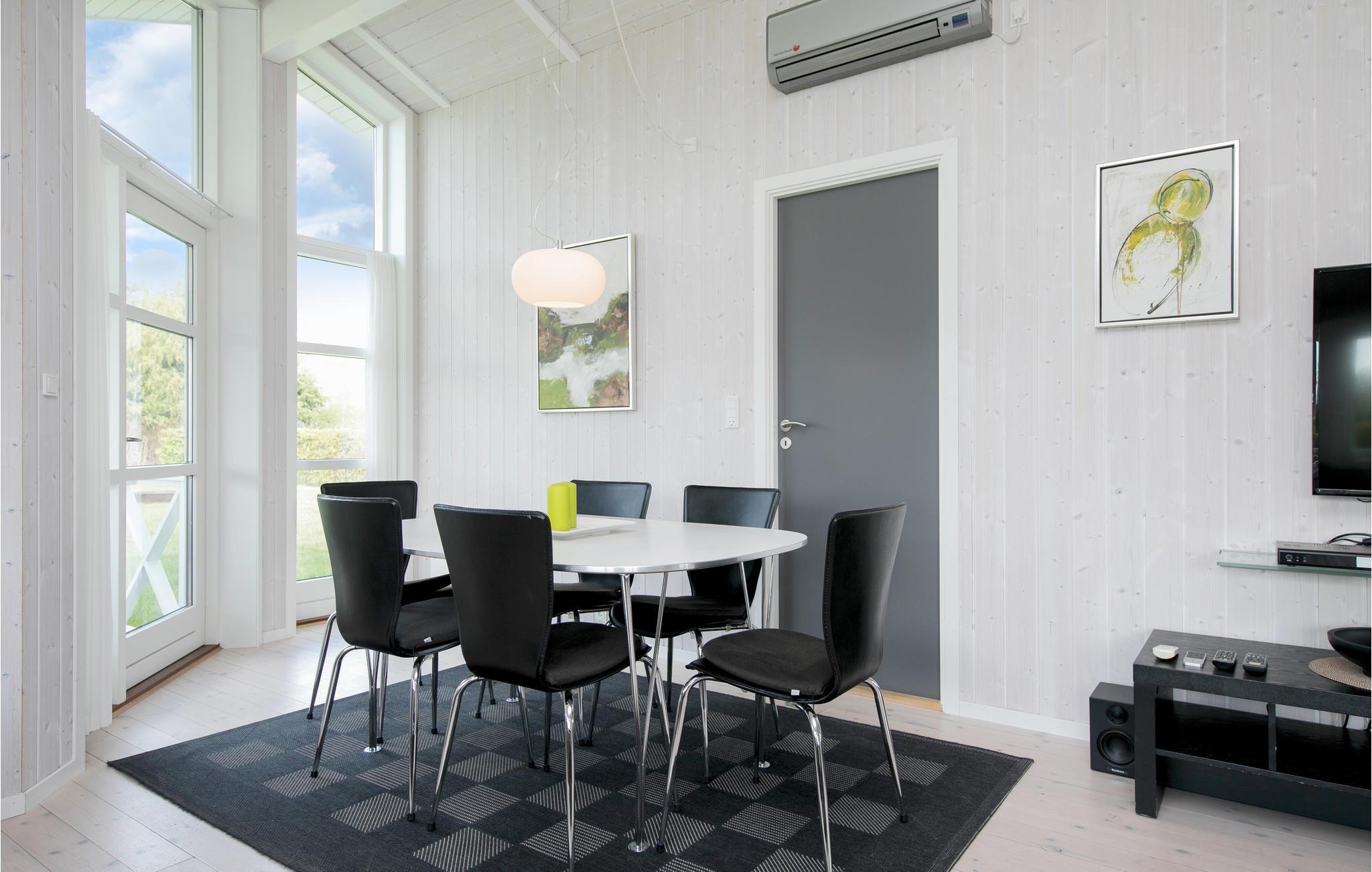 Schönes helles Ferienhaus in Øster Hurup. Für Gemütlichkeit sorgen bequeme Möbel und ein Kaminofen. Neben drei guten Schlafzimmern gibt es im Haus ein Gäste-WC, ein Bad mit Whirlpool für eventuell müde Muskeln und vor dem Wohnzimmer eine herrliche, sonnige Terrasse. In Øster Hurup gibt es ein subtropisches Erlebnisbad, den Naturpark Lille Vildmose und ein kleiner Hafen. Im Sommer geschieht im Hafen viel, viele Stände und ein geschäftiges Leben erwartet Sie in ihm.