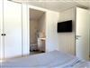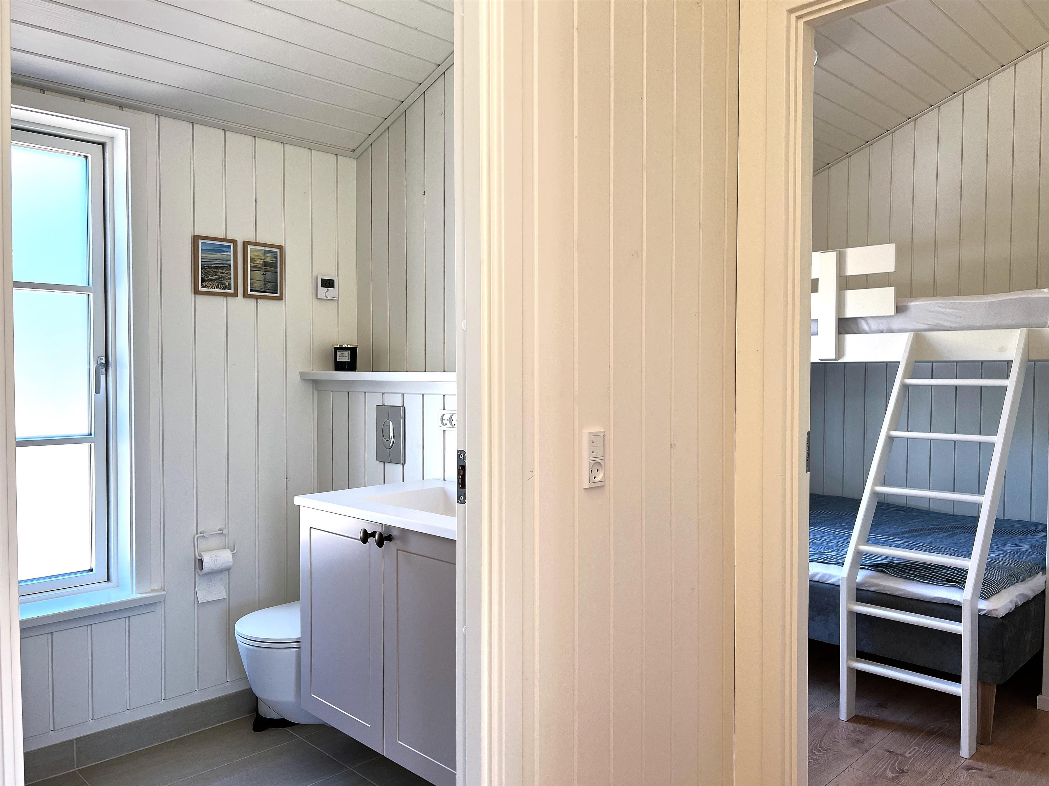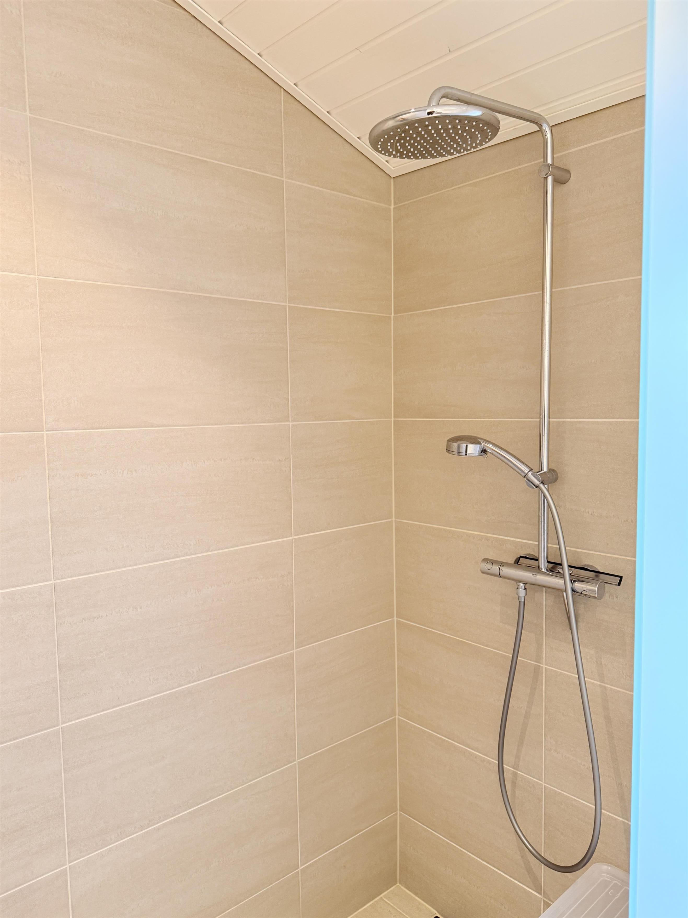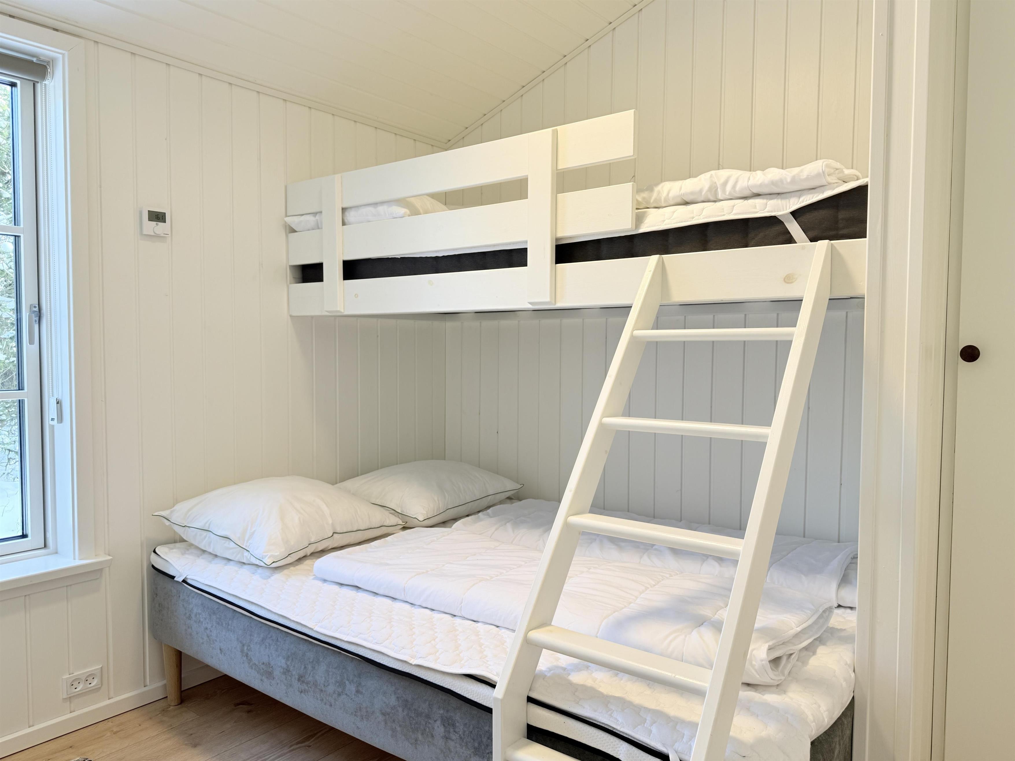 Das Haus verfügt außerdem über vier gute Schlafzimmer mit Kleiderschrank und zwei schöne Badezimmer mit Duschen, die praktischerweise zwischen den Schlafzimmern liegen. Drei Schlafzimmer verfügen über Doppelbetten und ein Zimmer über ein Etagenbett mit 140 cm Breite. Bett unten. Darüber hinaus gibt es einen Dachboden mit zwei Schlafplätzen für die etwas größeren Kinder, der auch gute Verteilungsmöglichkeiten für z.B. Kinder bietet. 2 Familien. Ein Schlafzimmer verfügt wie das Wohnzimmer über einen Smart-TV, und das Fernsehen kann über Chromecast gestreamt werden. Im gesamten Haus gibt es eine Fußbodenheizung, die mit einem Luft/Wasser-System beheizt wird und daher kostengünstig ist.
