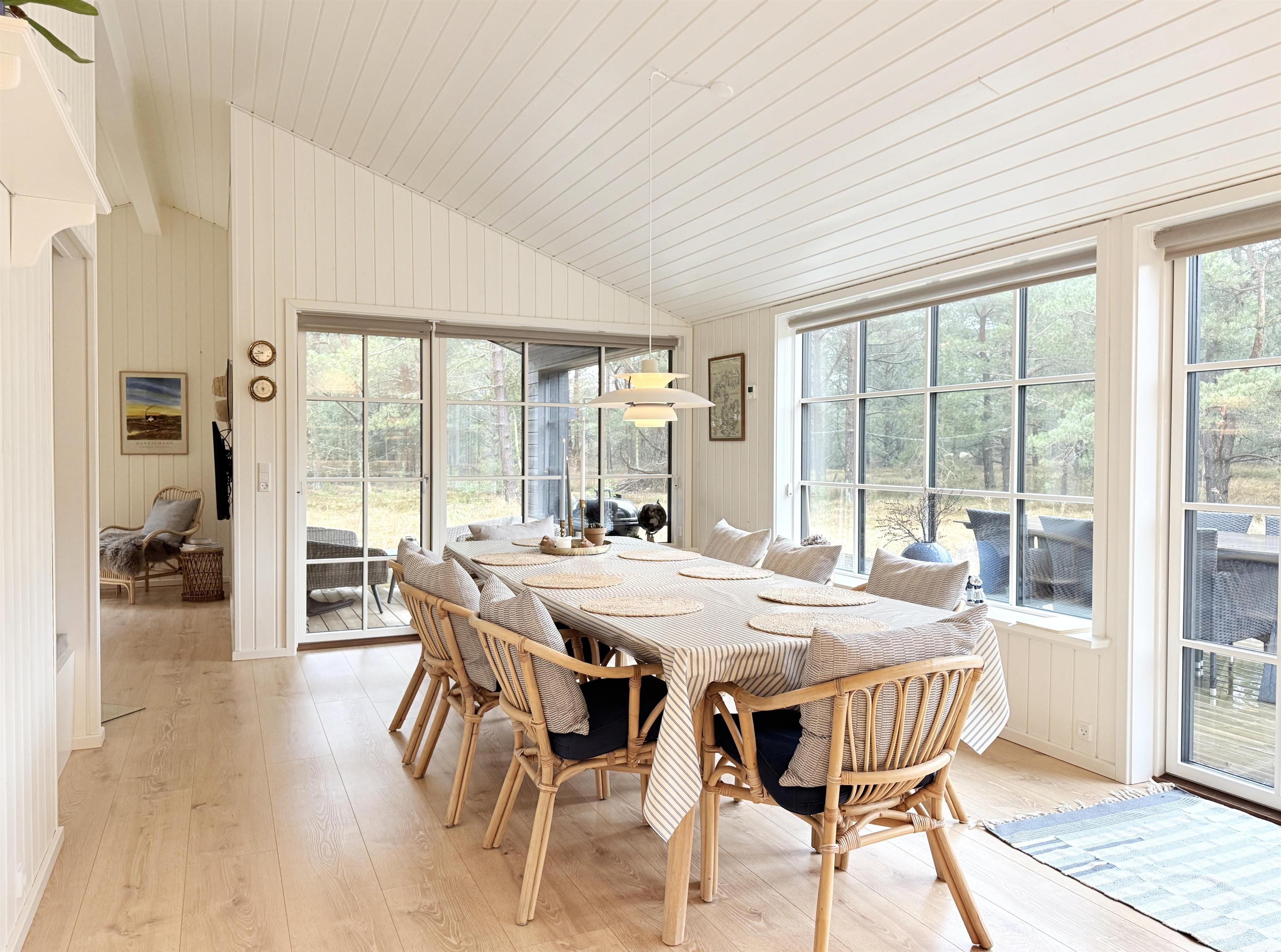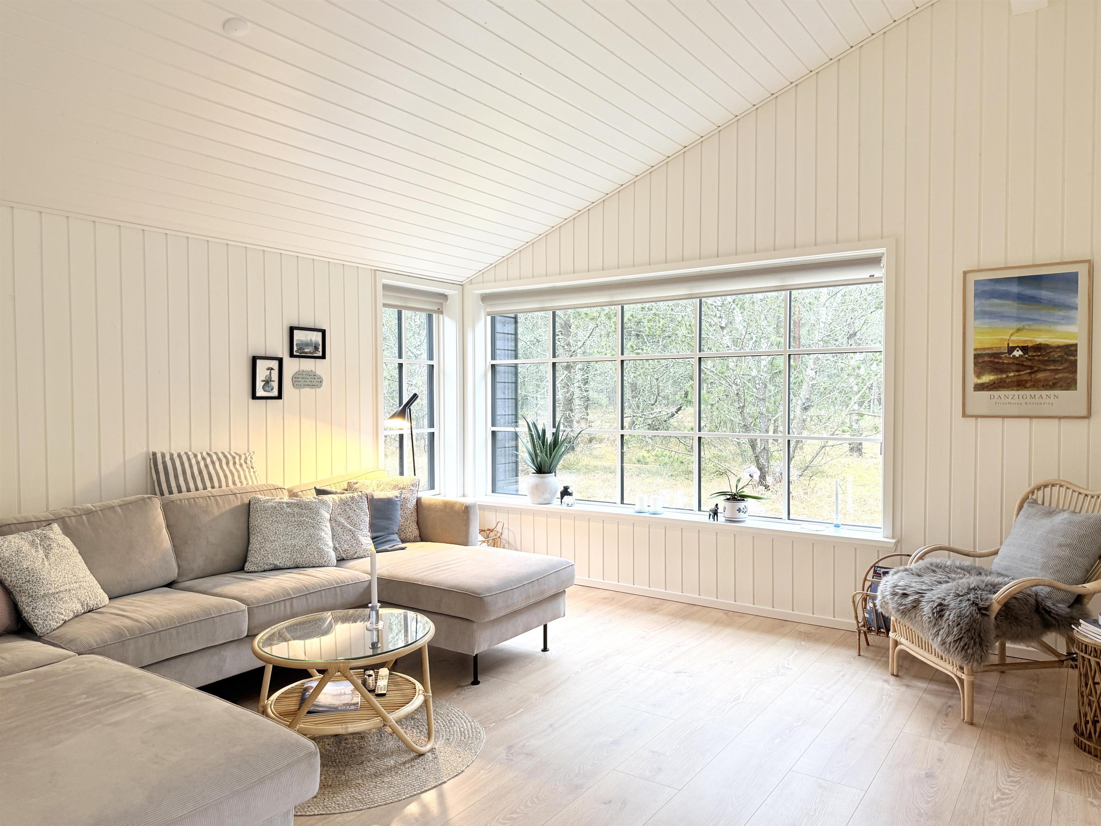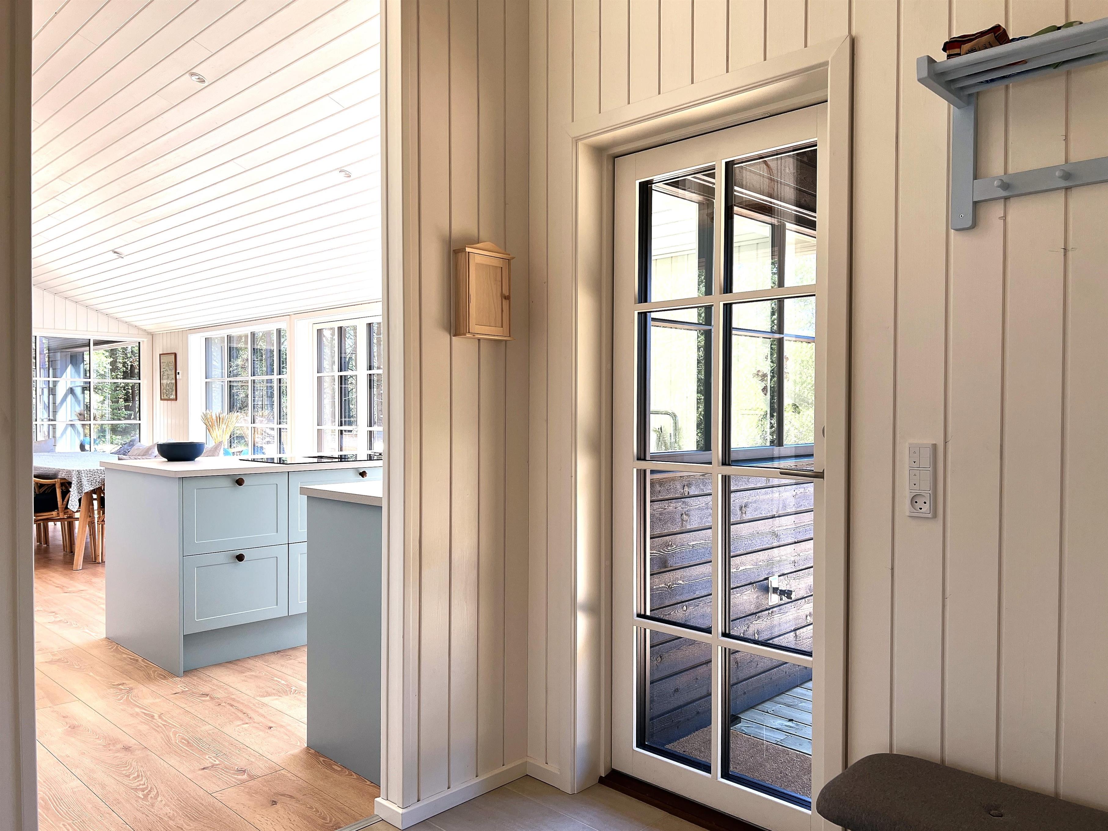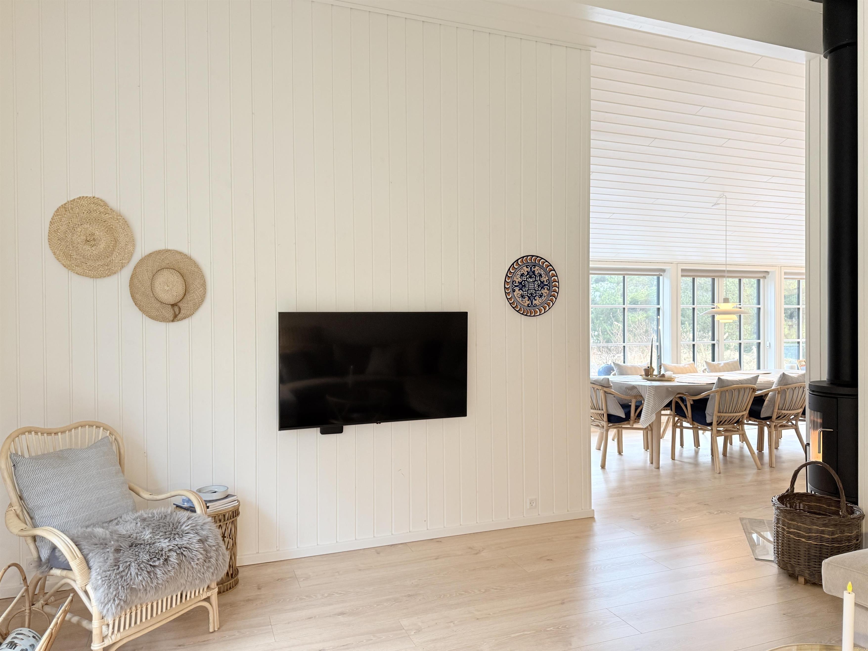 Das Ferienhaus wirkt besonders einladend und verfügt über viele moderne Details. Das Licht durch die schönen großen Fenster ist wunderschön und bringt fast die Natur ins Innere. Alle Räume sind mit modernem variablen Licht/Spotlight ausgestattet und werden mit einem modernen energiefreundlichen Heizsystem mit Luft/Wasser im gesamten Haus beheizt. Sie können auch den Holzofen im Wohnzimmer nutzen. Es wurde ein starkes Glasfasernetz installiert, das in allen Räumen erreichbar ist. Das Haus selbst verfügt über einen Flur mit Haushaltsgeräten, eine große und gut ausgestattete Wohnküche mit einer Kücheninsel und einem großen Esstisch.