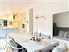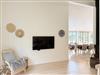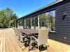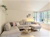 Es gibt zwei Ausgänge zur beeindruckenden 118 Quadratmeter großen Holzterrasse des Hauses. Geräumiges, helles Wohnzimmer mit Smart-TV und bequemen Möbeln.