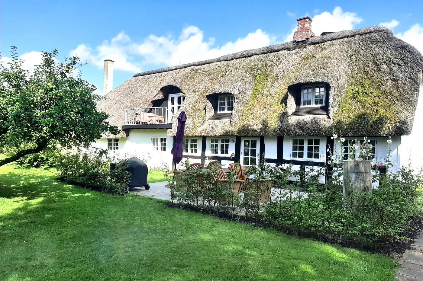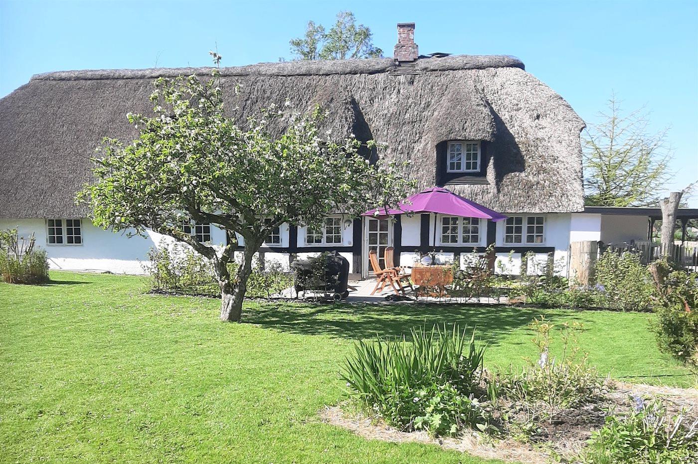 Charmantes Reetdach-Ferienhaus von 1777 mit großem Garten nahe Haderslev Fjord und Ørby Strand.