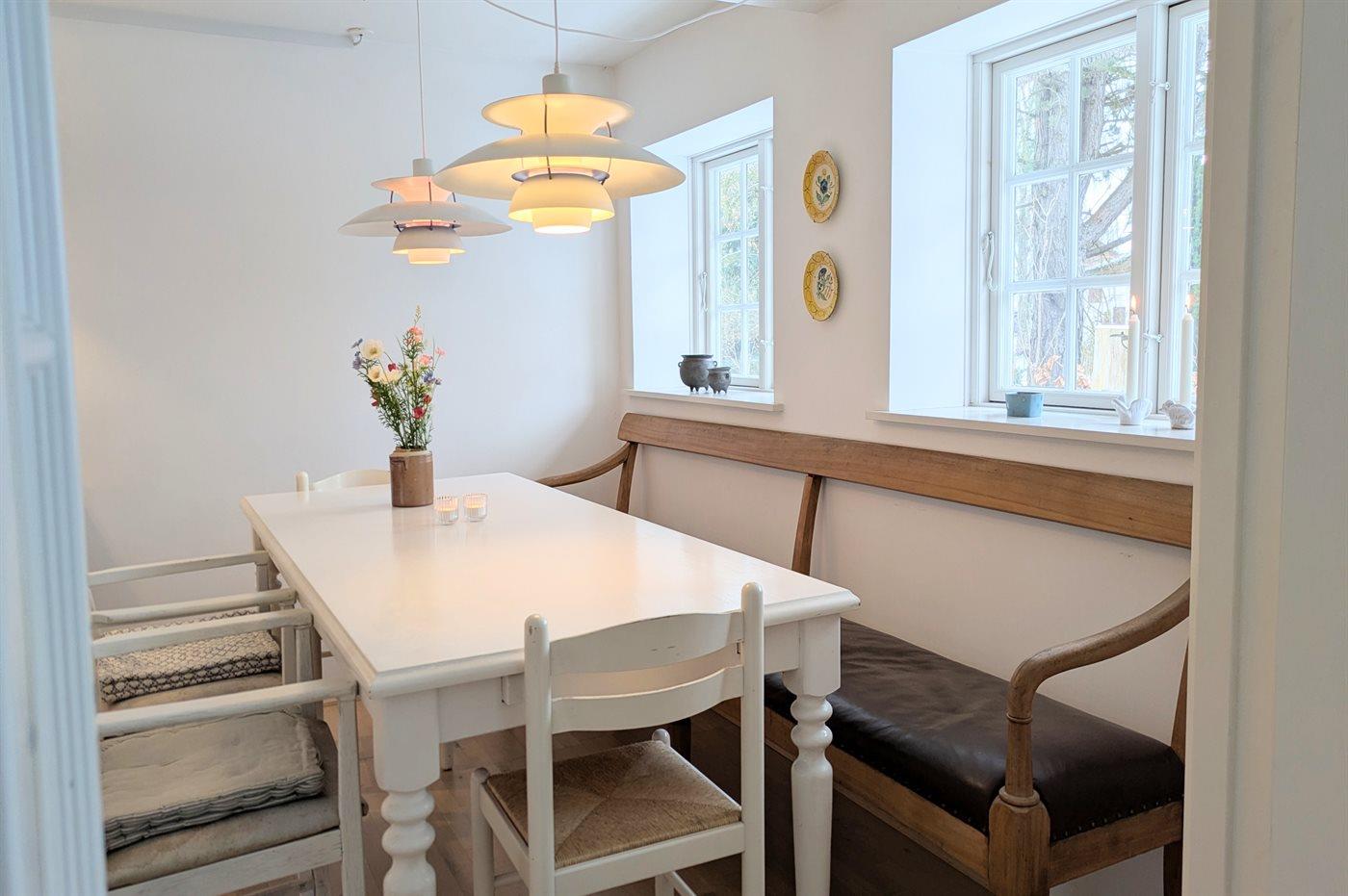 Ein charmantes Ferienhaus mit Reetdach im gemütlichen Dorf Vonsbæk - am Rande von Haderslev gelegen. Das Haus, das ursprünglich aus dem Jahr 1777 stammt, wurde unter Rücksichtsnahme vom ehemaligen Stil und der Geschichte des Hauses vollständig renoviert. Das geräumige Haus hat eine Wohnfläche von insgesamt 174 m2, die sich auf 2 Etagen verteilt, und bietet Platz für bis zu acht Personen.