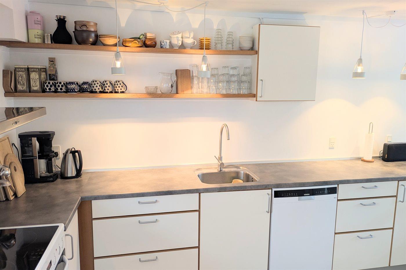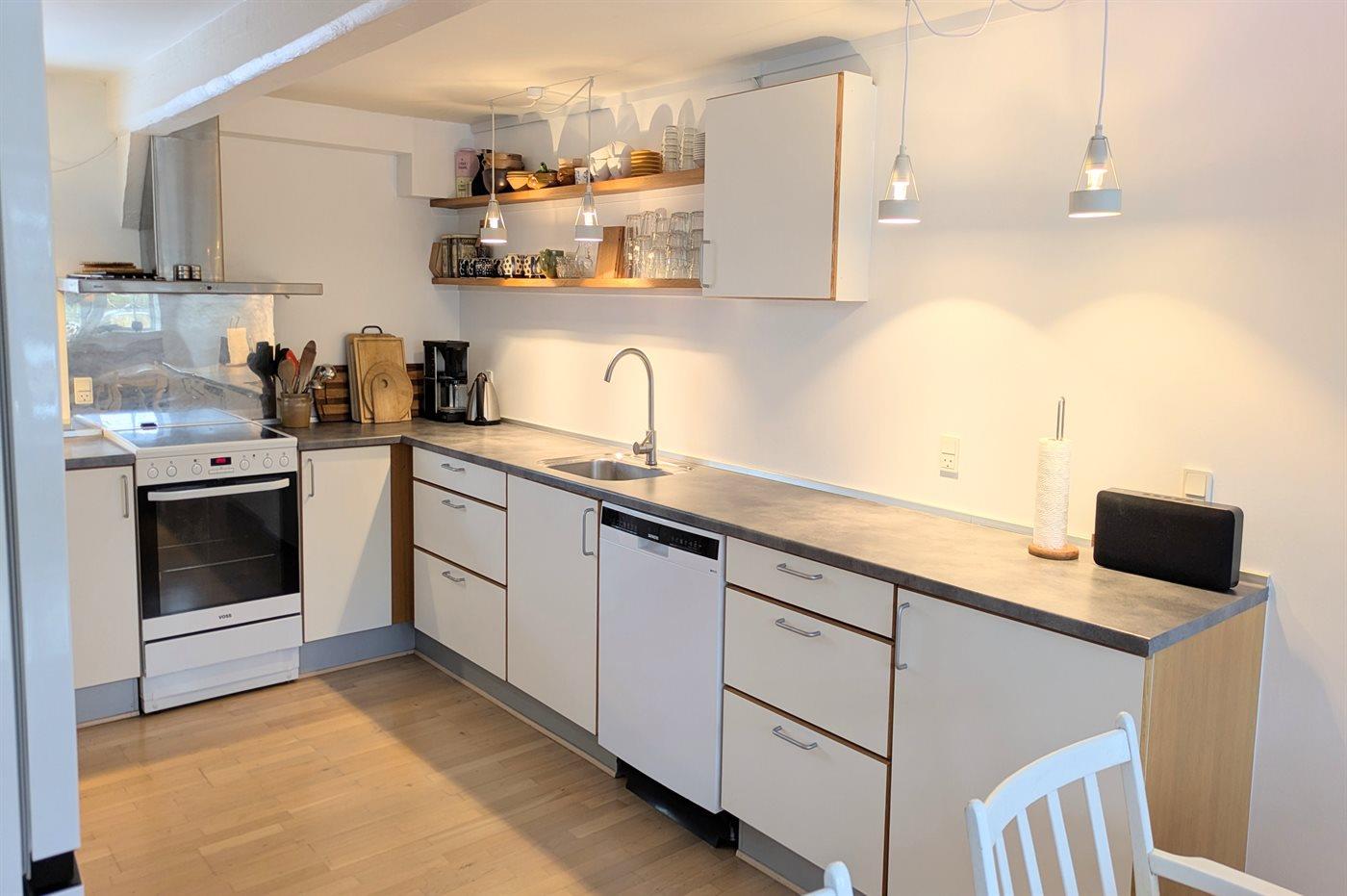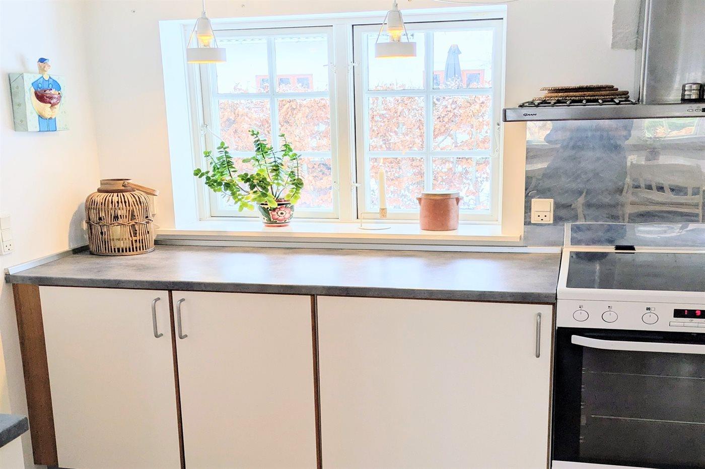 Im Erdgeschoss findet man eine geräumige Eingangshalle, ein Badezimmer mit Duschnische, eine große Küche mit Essbereich, ein gemütliches Wohnzimmer mit sichtbaren Deckenbalken und Kaminofen sowie ein Schlafzimmer. Im Obergeschoss gibt es drei gute Schlafzimmer und einen Vorraum mit Leseecke, Fernseher und Spielkonsole. Es gibt einen großen Garten mit viel Platz zum Spielen und Aktivitäten im Freien. Auf der Terrasse stehen Grill und Gartenmöbel zur Verfügung. Außerdem ist eine Außendusche vorhanden. Wenn man an das Wasser möchte kann man entweder an den Ørby Strand oder an den Haderslev Fjord fahren.
