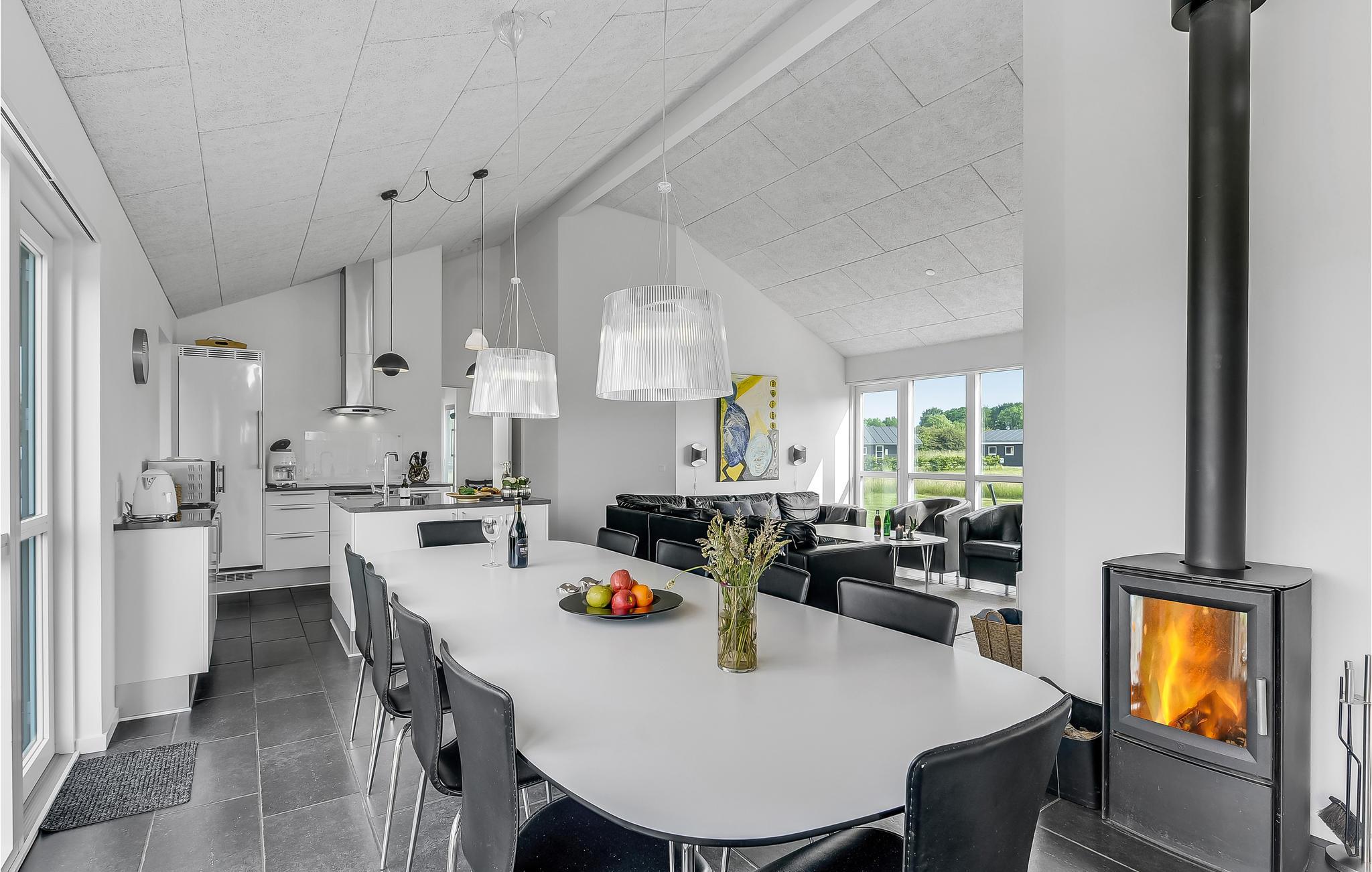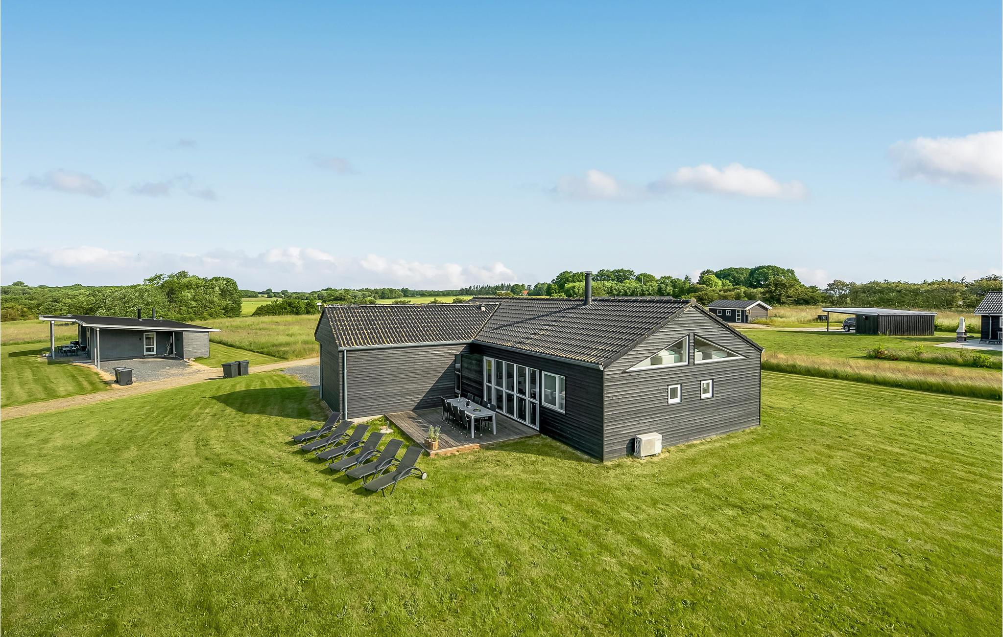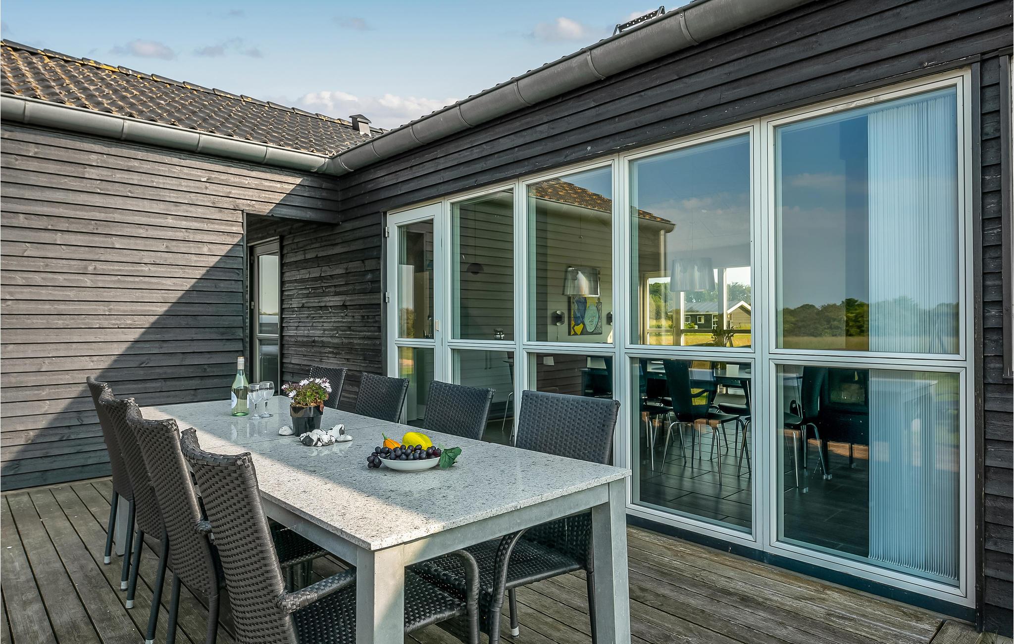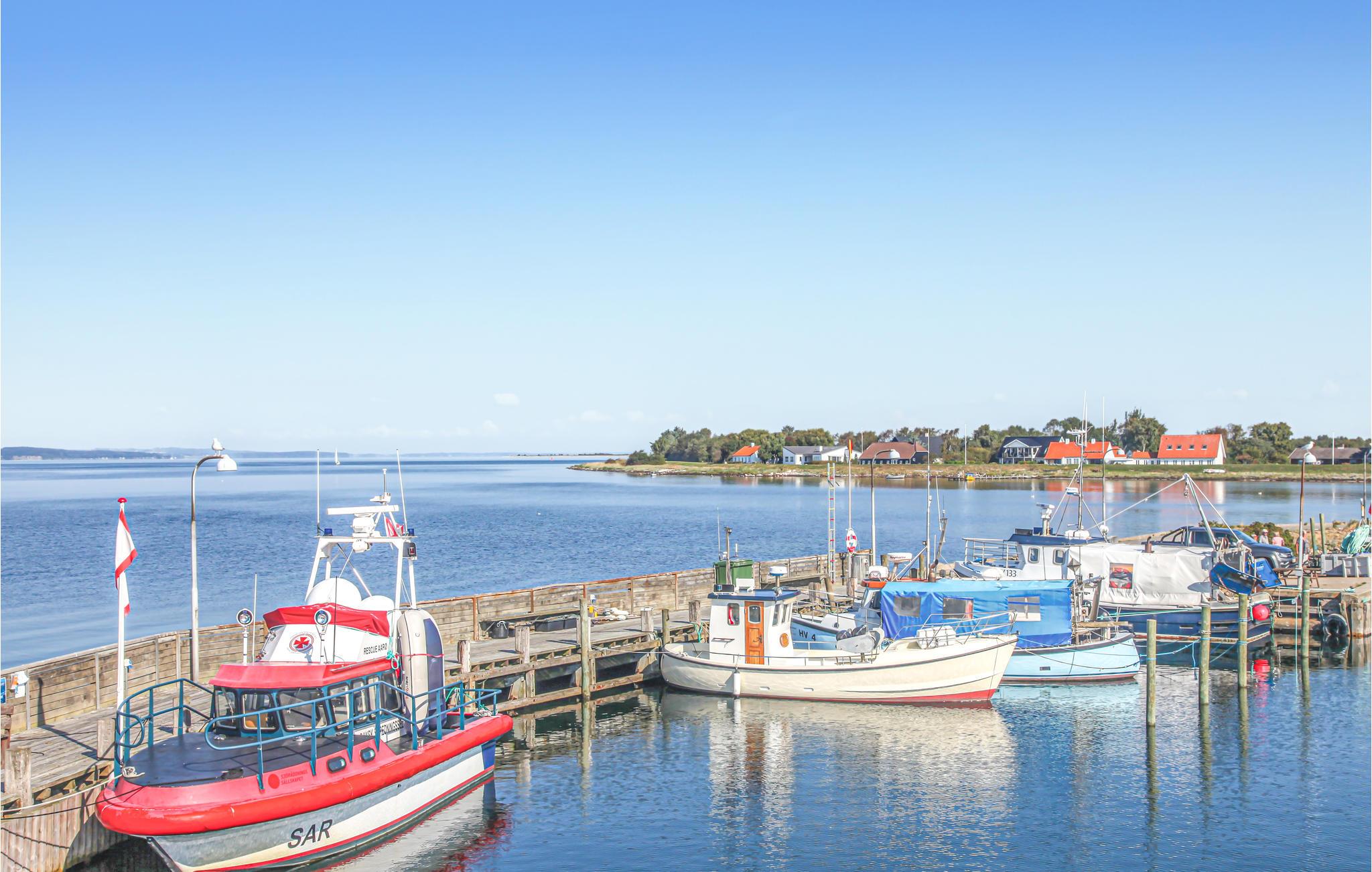 Schon wenn Sie sich auf die Fähre nach Aarø begeben, bemerken Sie, dass Sie sich auf dem Weg ins Urlaubsparadies befinden. Das Haus ist von 2013 und besteht aus Qualität pur. Die Einrichtung entspricht Luxusstandard. Sie verfügen über richtig gute Betten und werden an Annehmlichkeiten und modernen Geräten nichts vermissen. Der zentrale Raum des Hauses ist der große Wohnraum, in das von der Decke Tageslicht in den Raum fällt. In einem Bad haben Sie den Whirlpool und die Sauna. Die Terrassen laden zu geselligen Zusammenkünften an lauen Sommernächten ein. Für Ihre mitgebrachten Pferde können Sie eine Koppel mieten. Auf 2500 m² gibt es gutes Gras und ausreichend Wasser. Ein paar Bäume sorgen für Schatten. Genießen Sie Ihren Urlaub mit dem Pferd auf einem Ausritt auf dem Strand. Wie auf jeder Insel können Sie hier auch gut baden, es gibt wenige Autos und keinen Stress. Eine Radtour rund um die Insel können selbst kleine Kinder bewältigen. Für den täglichen Einkauf gibt es sogar Hofläden, die neben der eigenen Produktion auch Spezialitäten von den anderen Inseln anbieten. Auf dem Bauernhof Brummers Gaard können Sie gutes Galloway-Rind essen. Auf dem Hof gibt es Räder zu mieten, ebenso Meereskajaks, Fischernetze für Kinder und Bollerwägen. Der Hof Aarø Vingaard ist auch eine Möglichkeit für einen gemütlichen Abend. Hier wird auch lokal Produziertes angeboten. Auch Weinverkostungen werden angeboten. Hier finden Sie ein unberührtes Naturgebiet, das ein Vogelschutzgebiet ist. Die Fähre Helene liegt auf Aarø an und bringt Sie auf Ausflugsfahrten auf den Fjord nach Haderslev, eine schöne alte Stadt mit netten Geschäften. Die Fähre fährt stündlich und die Überfahrt dauert 15 Minuten. Wenn Sie gerne angeln, dann gibt es beim Haus einen guten Reinigungsplatz und eine große Gefriertruhe.