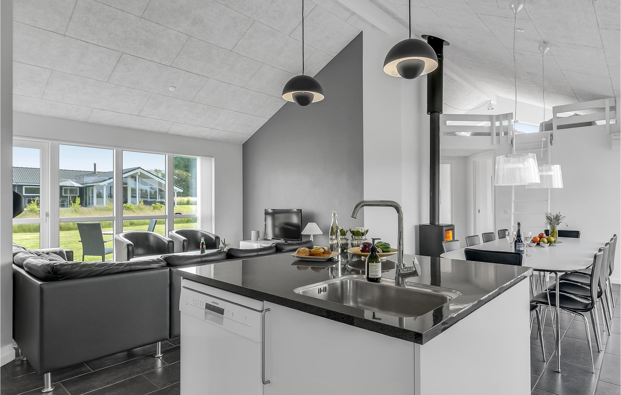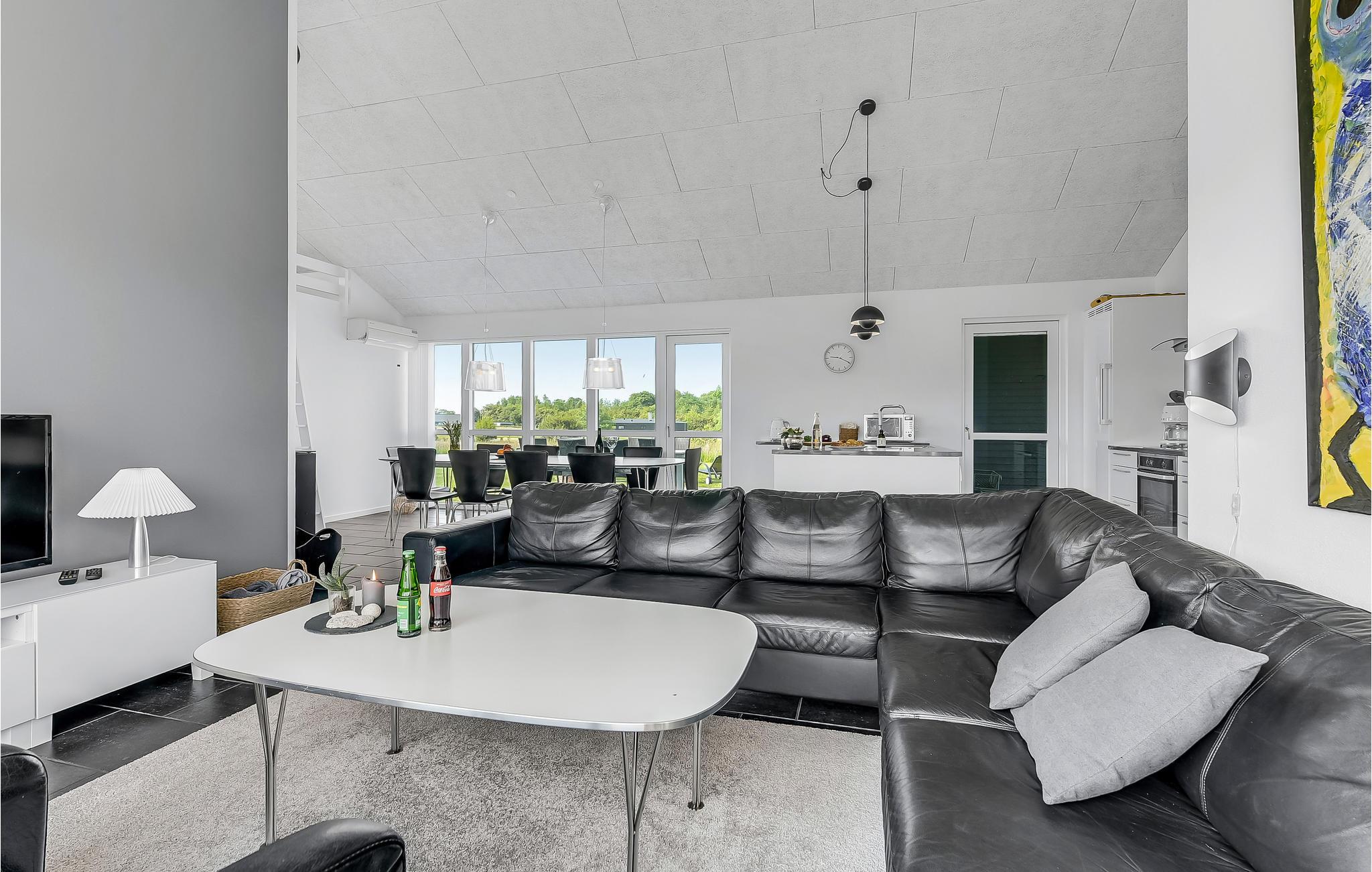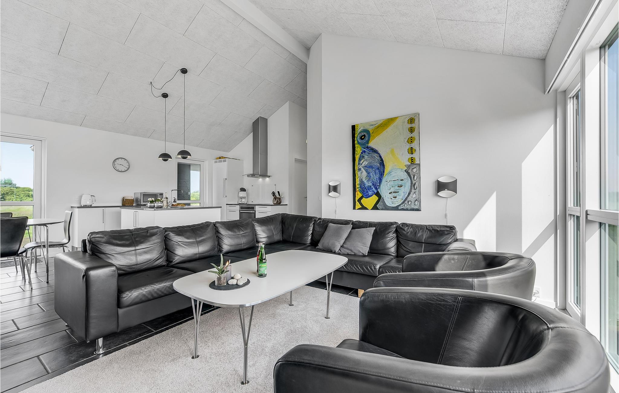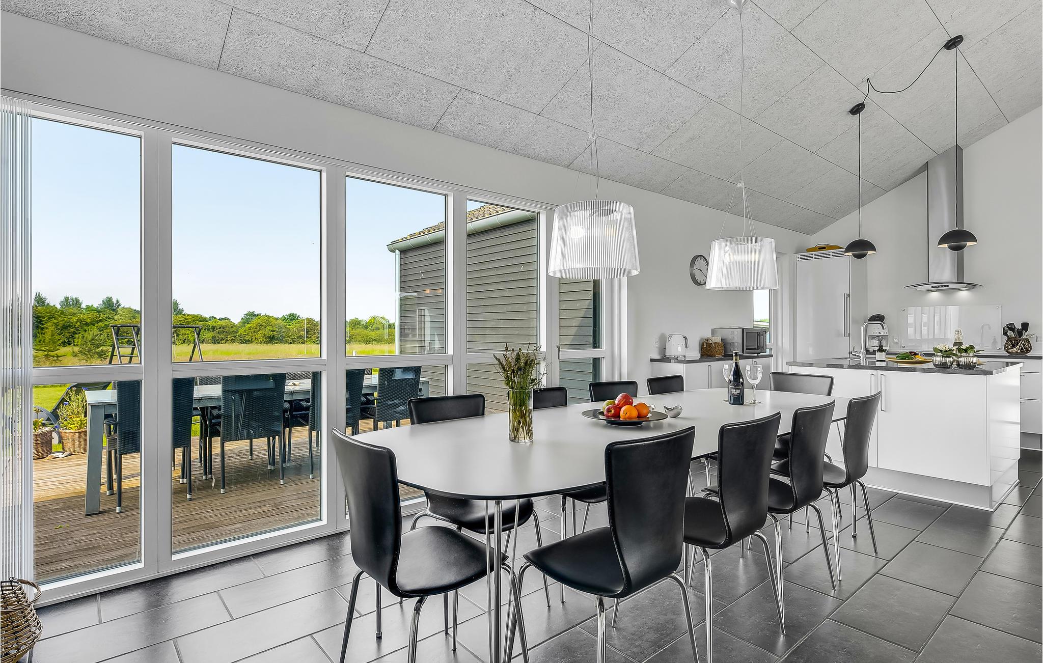 Schon wenn Sie sich auf die Fähre nach Aarø begeben, bemerken Sie, dass Sie sich auf dem Weg ins Urlaubsparadies befinden. Das Haus ist von 2013 und besteht aus Qualität pur. Die Einrichtung entspricht Luxusstandard. Sie verfügen über richtig gute Betten und werden an Annehmlichkeiten und modernen Geräten nichts vermissen. Der zentrale Raum des Hauses ist der große Wohnraum, in das von der Decke Tageslicht in den Raum fällt. In einem Bad haben Sie den Whirlpool und die Sauna. Die Terrassen laden zu geselligen Zusammenkünften an lauen Sommernächten ein. Für Ihre mitgebrachten Pferde können Sie eine Koppel mieten. Auf 2500 m² gibt es gutes Gras und ausreichend Wasser. Ein paar Bäume sorgen für Schatten. Genießen Sie Ihren Urlaub mit dem Pferd auf einem Ausritt auf dem Strand. Wie auf jeder Insel können Sie hier auch gut baden, es gibt wenige Autos und keinen Stress. Eine Radtour rund um die Insel können selbst kleine Kinder bewältigen. Für den täglichen Einkauf gibt es sogar Hofläden, die neben der eigenen Produktion auch Spezialitäten von den anderen Inseln anbieten. Auf dem Bauernhof Brummers Gaard können Sie gutes Galloway-Rind essen. Auf dem Hof gibt es Räder zu mieten, ebenso Meereskajaks, Fischernetze für Kinder und Bollerwägen. Der Hof Aarø Vingaard ist auch eine Möglichkeit für einen gemütlichen Abend. Hier wird auch lokal Produziertes angeboten. Auch Weinverkostungen werden angeboten. Hier finden Sie ein unberührtes Naturgebiet, das ein Vogelschutzgebiet ist. Die Fähre Helene liegt auf Aarø an und bringt Sie auf Ausflugsfahrten auf den Fjord nach Haderslev, eine schöne alte Stadt mit netten Geschäften. Die Fähre fährt stündlich und die Überfahrt dauert 15 Minuten. Wenn Sie gerne angeln, dann gibt es beim Haus einen guten Reinigungsplatz und eine große Gefriertruhe.