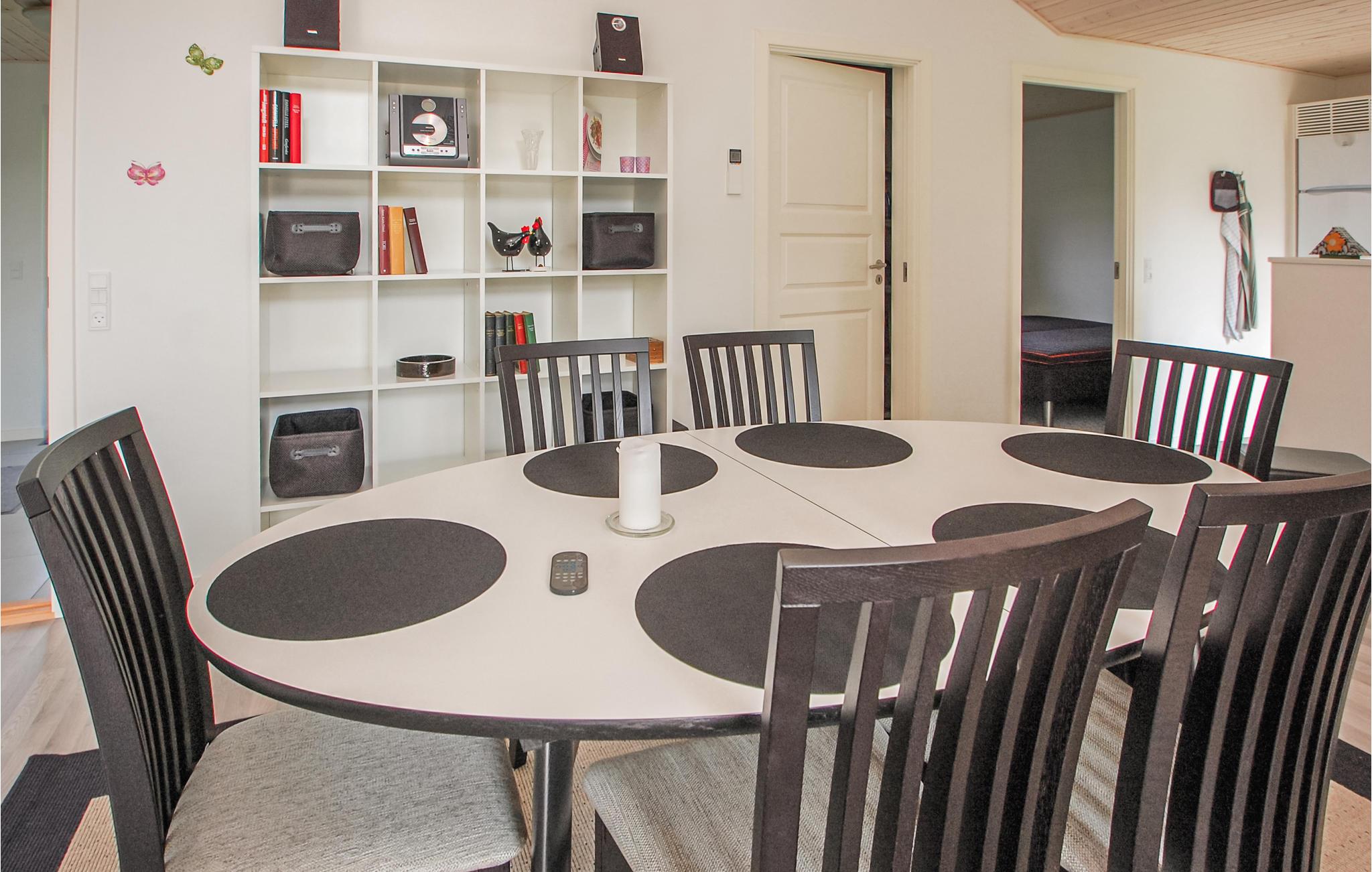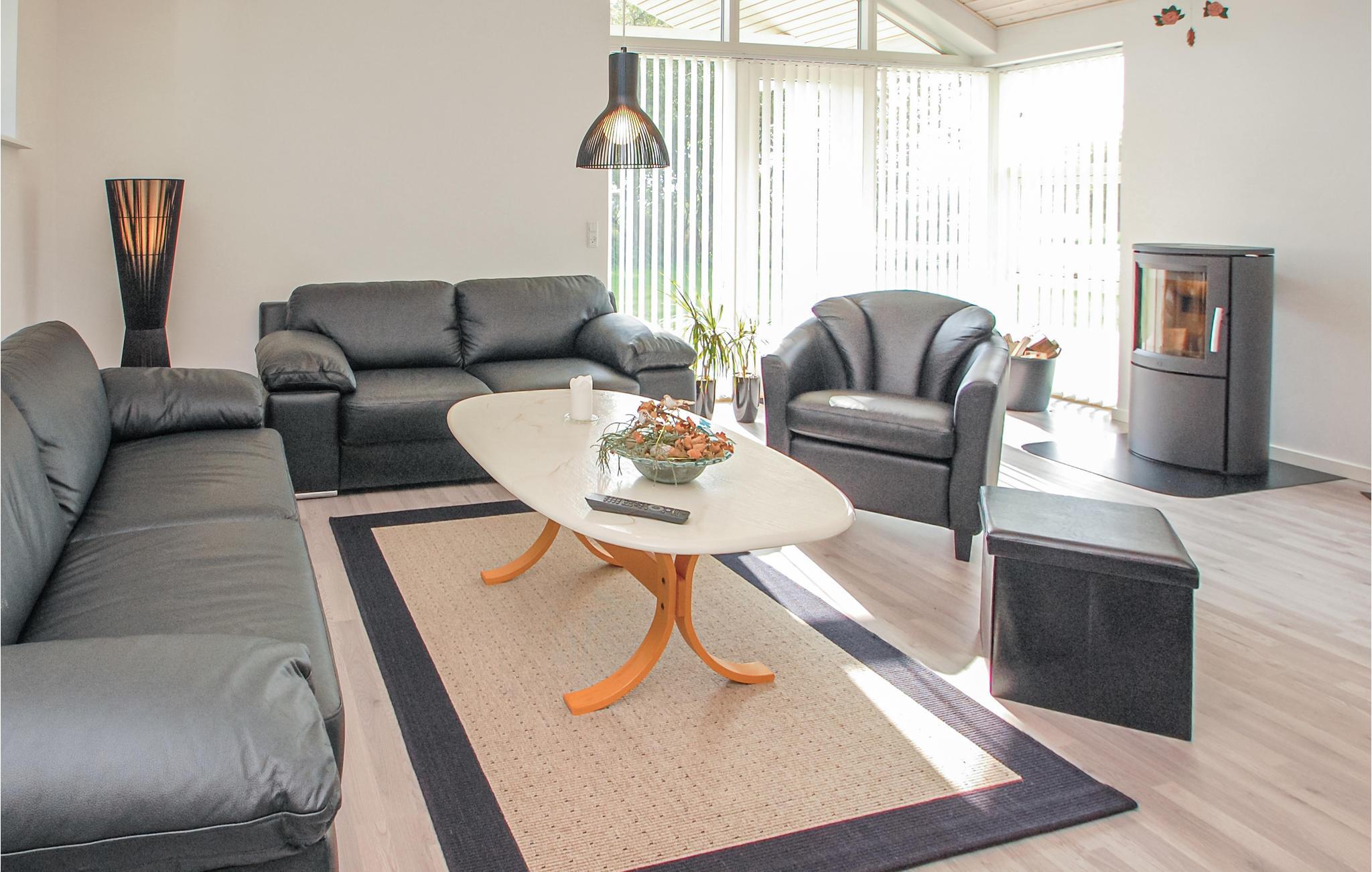 Schönes Ferienhaus auf der Insel Aarø, es wurde 2014 errichtet. Eine bis zum First offene Decke lässt viel Licht in Innere, hinzu kommen noch große Fenster. Eine Halbmauer trennt die Küche vom Wohnraum, hier genießt die ganze Familie den Urlaub gemeinsam. Wärmepumpen sorgen für einen niedrigen Energieverbrauch und somit Kosten, gleichzeitig gibt es auch einen behaglichen Kaminofen. Im Haus gibt es gute Betten und die Einrichtung zeugt von gutem Geschmack der Eigentümer. Auf der teilweise überdachten Terrasse haben Sie die Gelegenheit verschiedene Jahreszeiten zu genießen. Auf der Insel können Sie gut baden, typisch für eine Insel ist es nie weit zum Meer. Es gibt nur wenige Autos auf der Insel. Eine Rundfahrt um die ganze Insel mit dem Fahrrad können sogar die jüngeren Familienmitglieder bewältigen. Unterwegs können Sie eventuell den schönen Abenteuerspielplatz besuchen, er liegt nicht weit vom Haus. Auf der Insel können Sie auch einkaufen. Ein Besuch auf dem Hof Brummers Gård ist ein richtiges Erlebnis, hier werden Spezialitäten von dänischen Inseln angeboten. Sie können auch im Restaurant Fleisch vom exklusiven Galloway Rind verkosten. Auf Brummers können Sie auch Räder mieten, auch Meereskajaks, ein Fischernetz für Kinder und Bollerwägen – alles was Sie vielleicht auf einem richtigen Inselausflug brauchen könnten. Der Weinbauer der Insel bietet zu einem Abendessen auch lokal produzierten Wein an. Sie können beim Weinbauern auch eine Weinverkostung arrangieren. Die Fähre Helene bringt Sie von Aarø auf eine schöne Fahrt durch den 12 km langen Fjord bis nach Haderslev. Haderslev ist eine schöne alte Stadt mit guten Spezialgeschäften und Museen. Bei Ihrer Ankunft im Fährhafen werden Sie erfahren, dass die Fähre einmal pro Stunde ablegt und wenn Bedarf besteht, legt Sie auch öfters ab, damit Sie im Laufe von 15 Minuten die Insel erreichen können. Im Hafen gibt es Fischerboote und Schiffe von Freizeitkapitänen. Auf der ganzen Insel können Sie gut angeln.