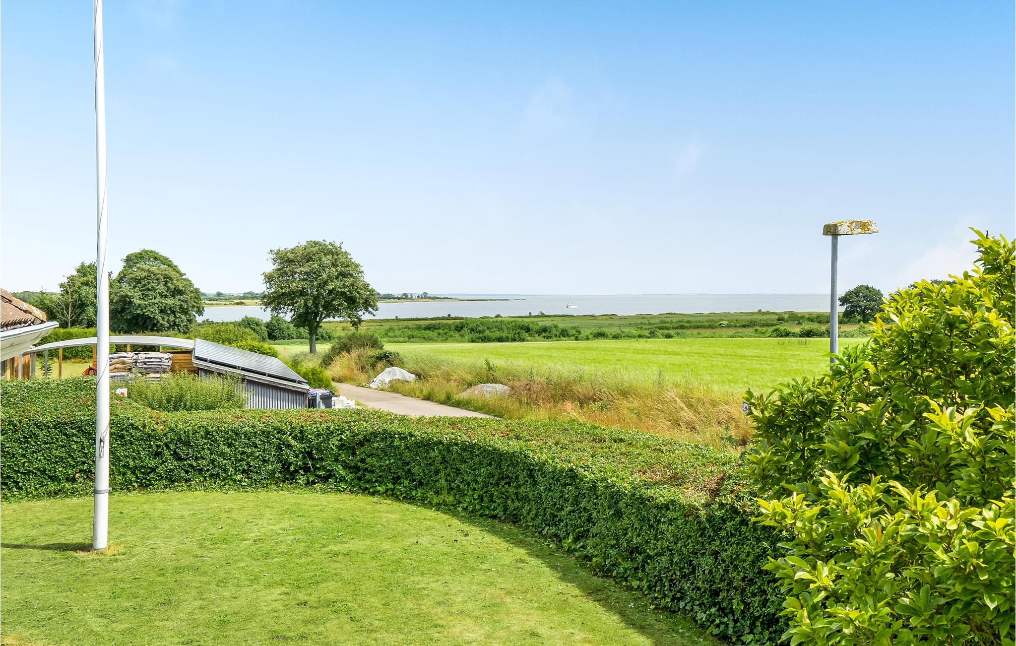 Ein Ferienhaus mit Meerblick und behaglicher Atmosphäre.