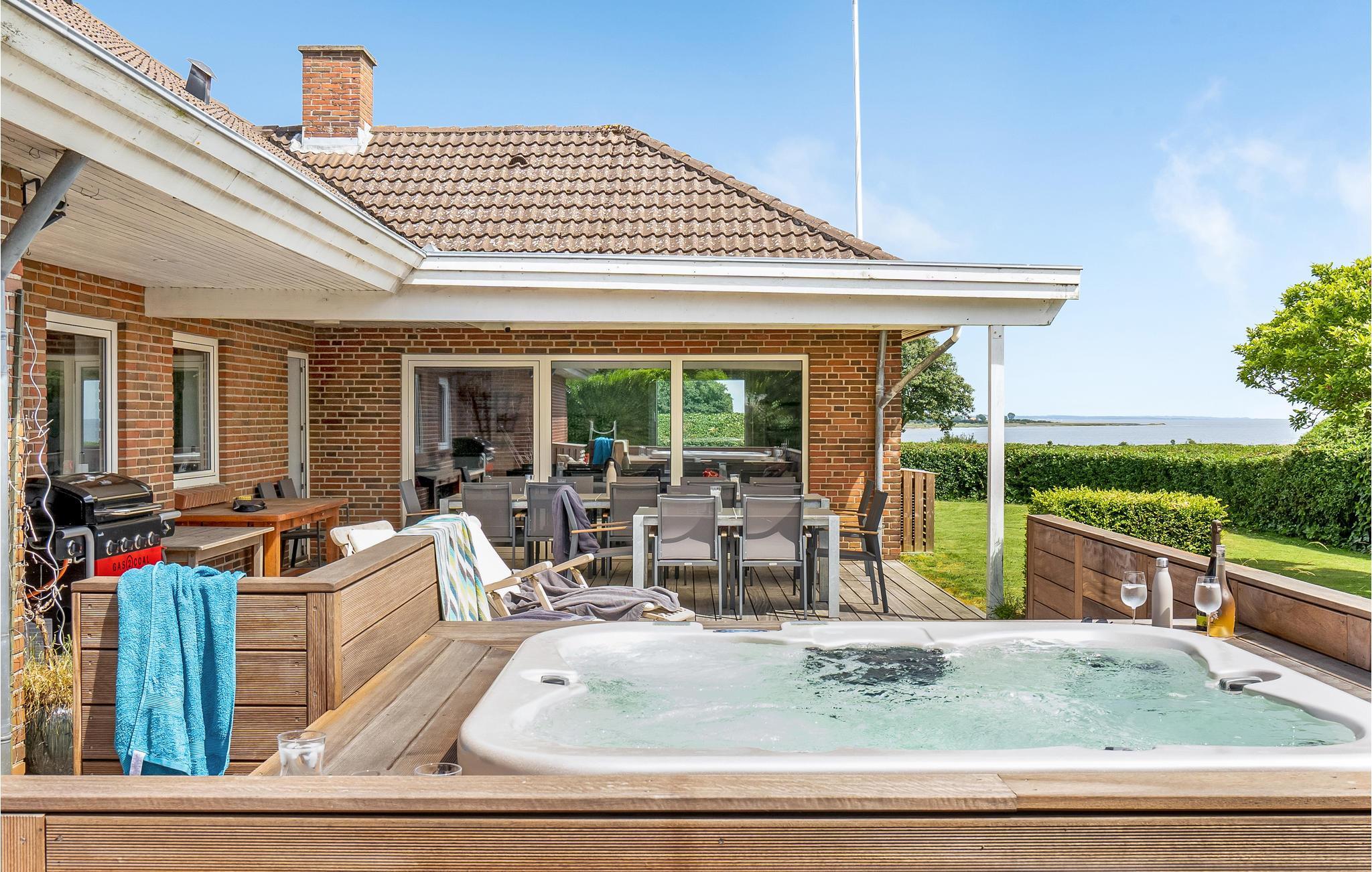 Modernes Steinhaus mit Meerblick, Whirlpool und Aktivitätsraum nahe Årøsund.