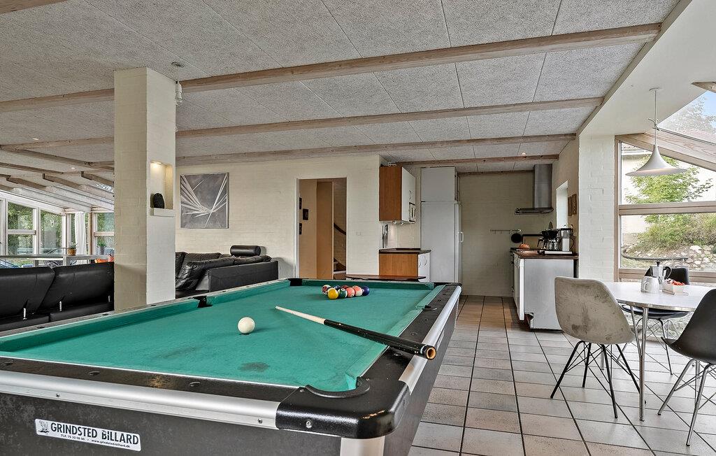 Wenn Sie mit einer großen Familie oder vielen Freunden einen wunderschönen Urlaub verbringen wollen, ist dieses Haus genau das richtige für Sie. Ein lichtdurchfluteter Wohnbereich mit verschiedenen großen Sofas bieten ausreichend Platz, um gemeinsam zu entspannen, fernzusehen oder einen Spieleabend zu verbringen. In der Küche können Sie leckere Mahlzeiten zubereiten und diese am langen Esstisch genießen. Ein Billardtisch lädt zu geselligen Runden und heiteren Duellen ein.