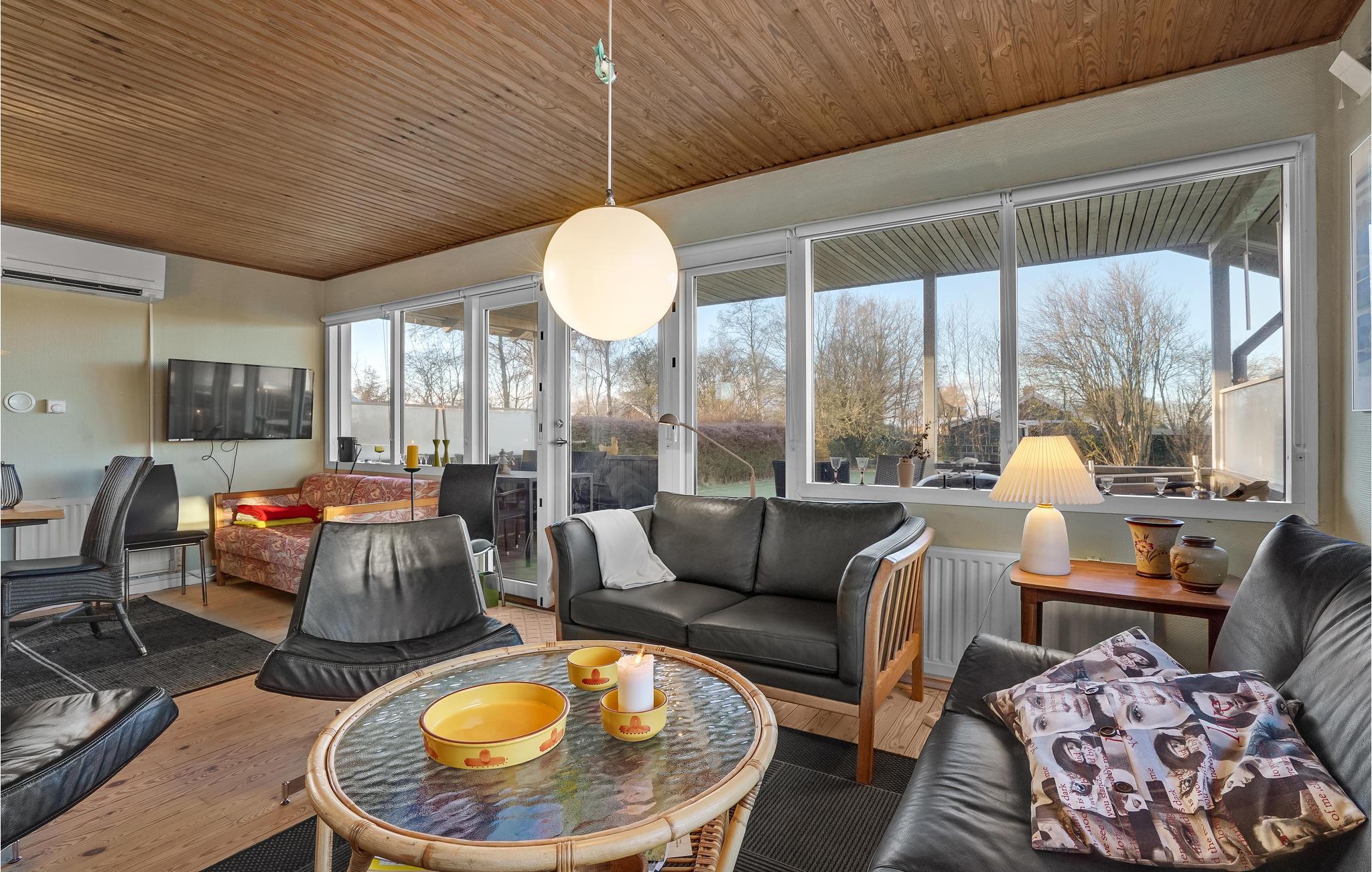 Genießen Sie ein haustierfreundliches Ferienhaus nahe dem Meer mit Terrasse, Grill und teilweisem Meerblick in Aarø, Dänemark.