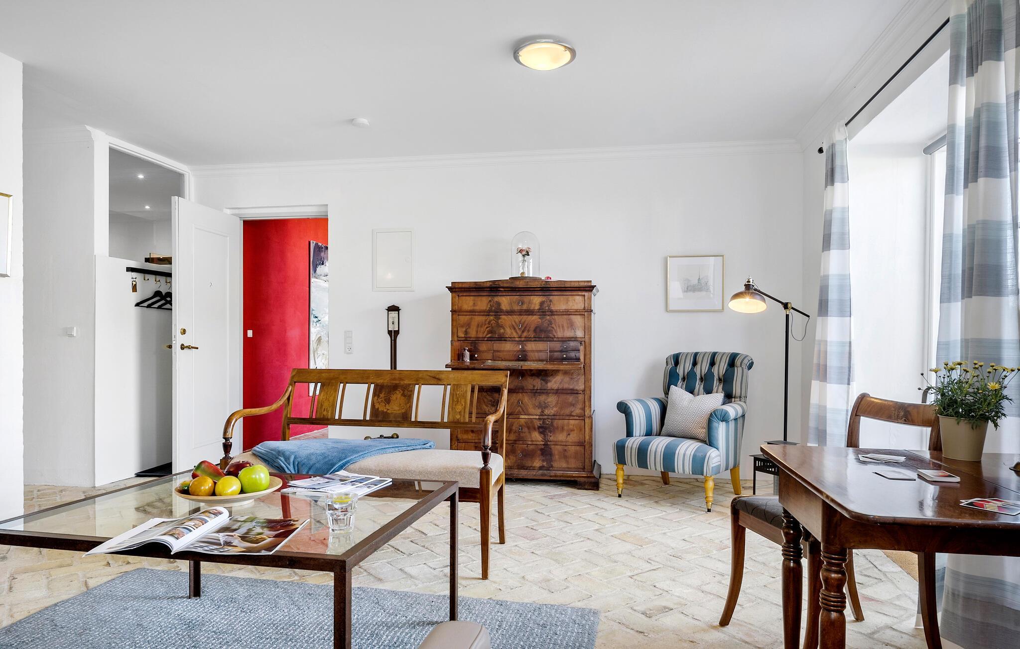 Verbringen Sie einen schönen Urlaub in dieser einladenden Ferienwohnung nahe dem Strand.