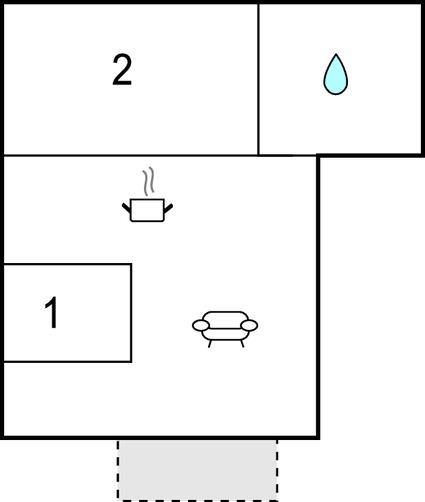 Wohnraum/Küche - 1 Schlafmöglichkeit. (Einzelbett(en)). 2 Schlafmöglichkeiten. (Doppelbett(en)).