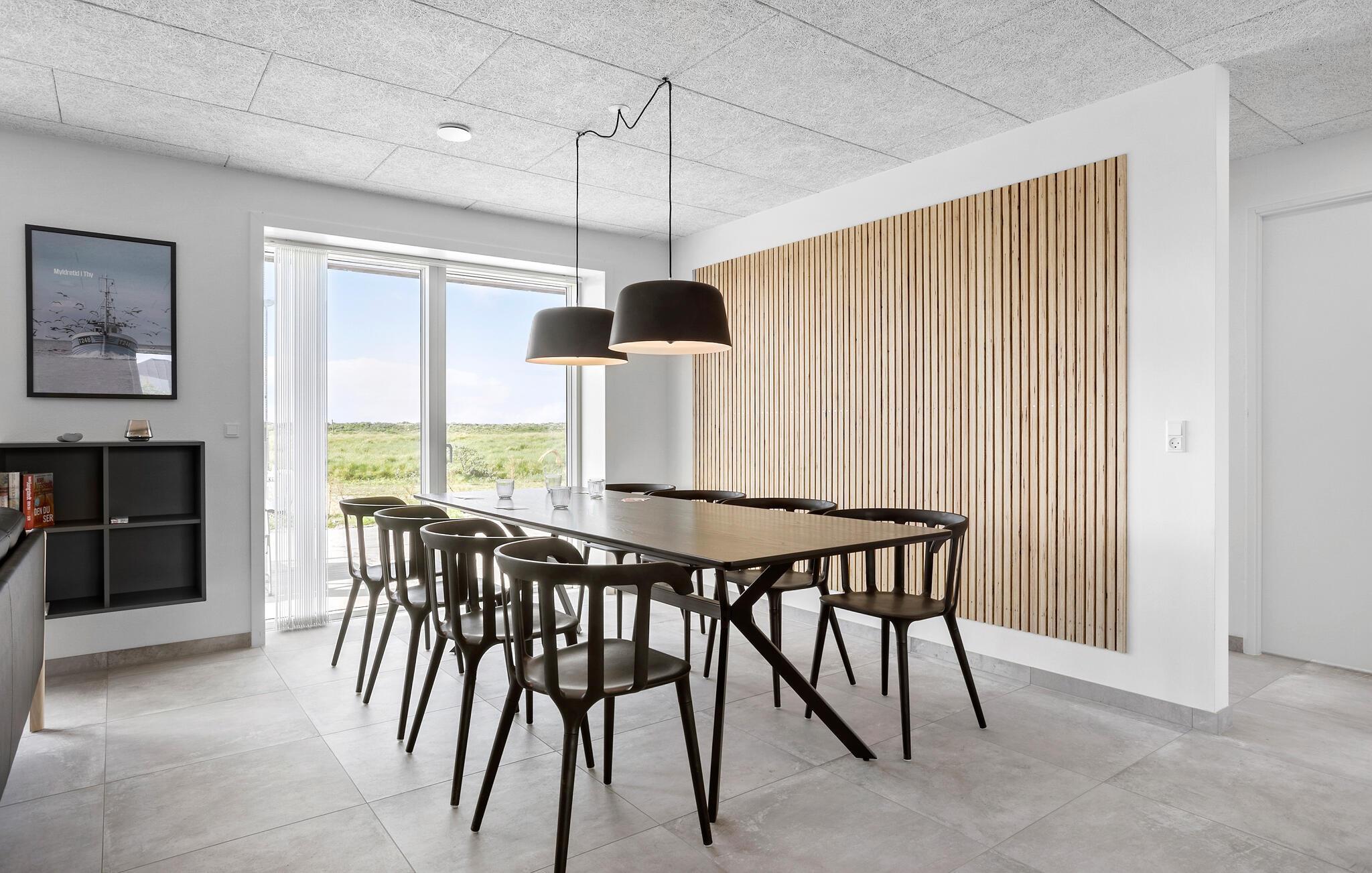 Entfliehen Sie dem Alltag und erleben Sie die atemberaubende Natur der dänischen Westküste. Ihr modernes Ferienhaus, umgeben von schöner Landschaft, lädt Sie ein, in aller Ruhe zu entspannen und die Schönheit der Natur zu genießen. Das Ferienhaus ist lichtdurchflutet und bietet einen herrlichen Blick auf die umliegende Landschaft. Das großzügige Wohnzimmer mit seinen gemütlichen Sofas und dem modernen Essbereich ist ideal für gemeinsame Mahlzeiten und gesellige Stunden mit der ganzen Familie. Kommen Sie hier auch nach einem langen Tag voller Abenteuer zur Ruhe.