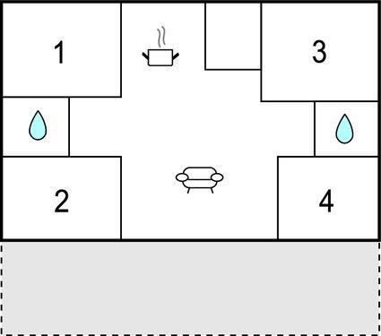 Badezimmer (nr. 1) - WC. Warmes und kaltes Wasser. Dusche