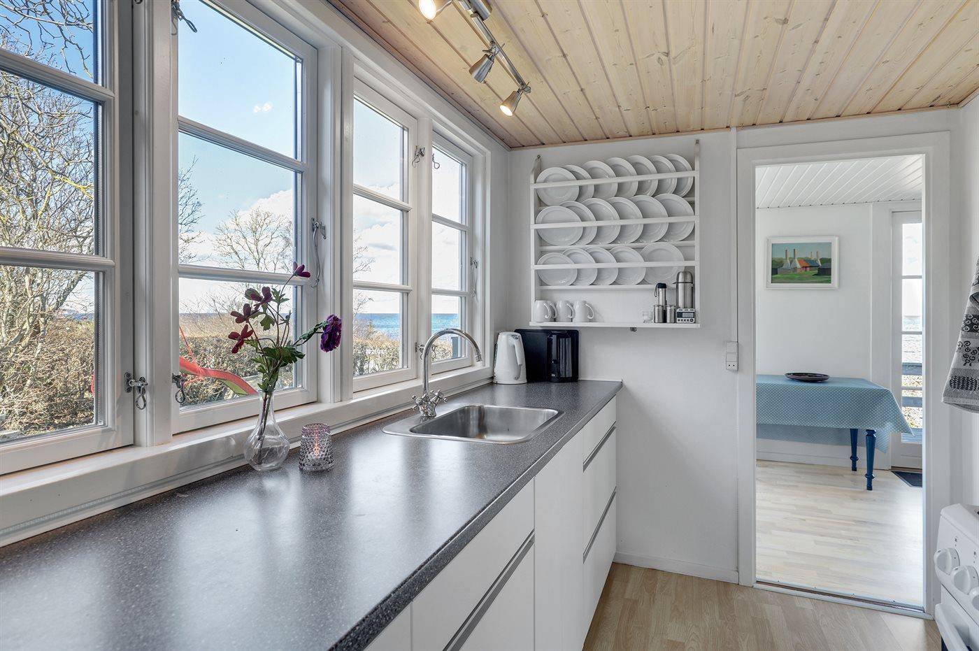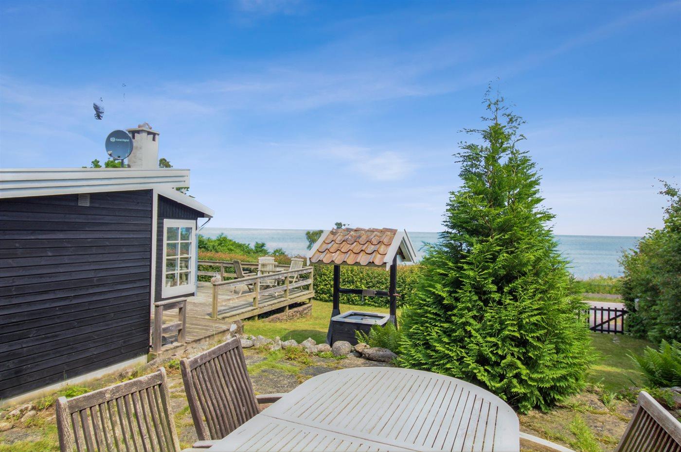 Dieses ältere, teilweise renovierte Ferienhaus liegt auf einem schönen Naturgrundstück nur 50 m von der Küste bei Tejn - mit einem kleinen Sandstrand. Das Haus liegt an einer Landstraße. Sowohl vom Wohnzimmer als auch von der in versetzter Ebene liegenden Holzterrasse haben Sie Aussicht auf die Küste und das Meer. Es gibt 2 weitere Terrassen - von denen die eine vorzüglich zum Sonnenbaden geeignet ist, da sie ungestört liegt.