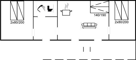 Die Schlafplätze verteilen sich auf 2 Schlafräume. 4 Schlafplätze in Doppelbetten. 2 Schlafplätze auf einer Doppelschlafcouch.