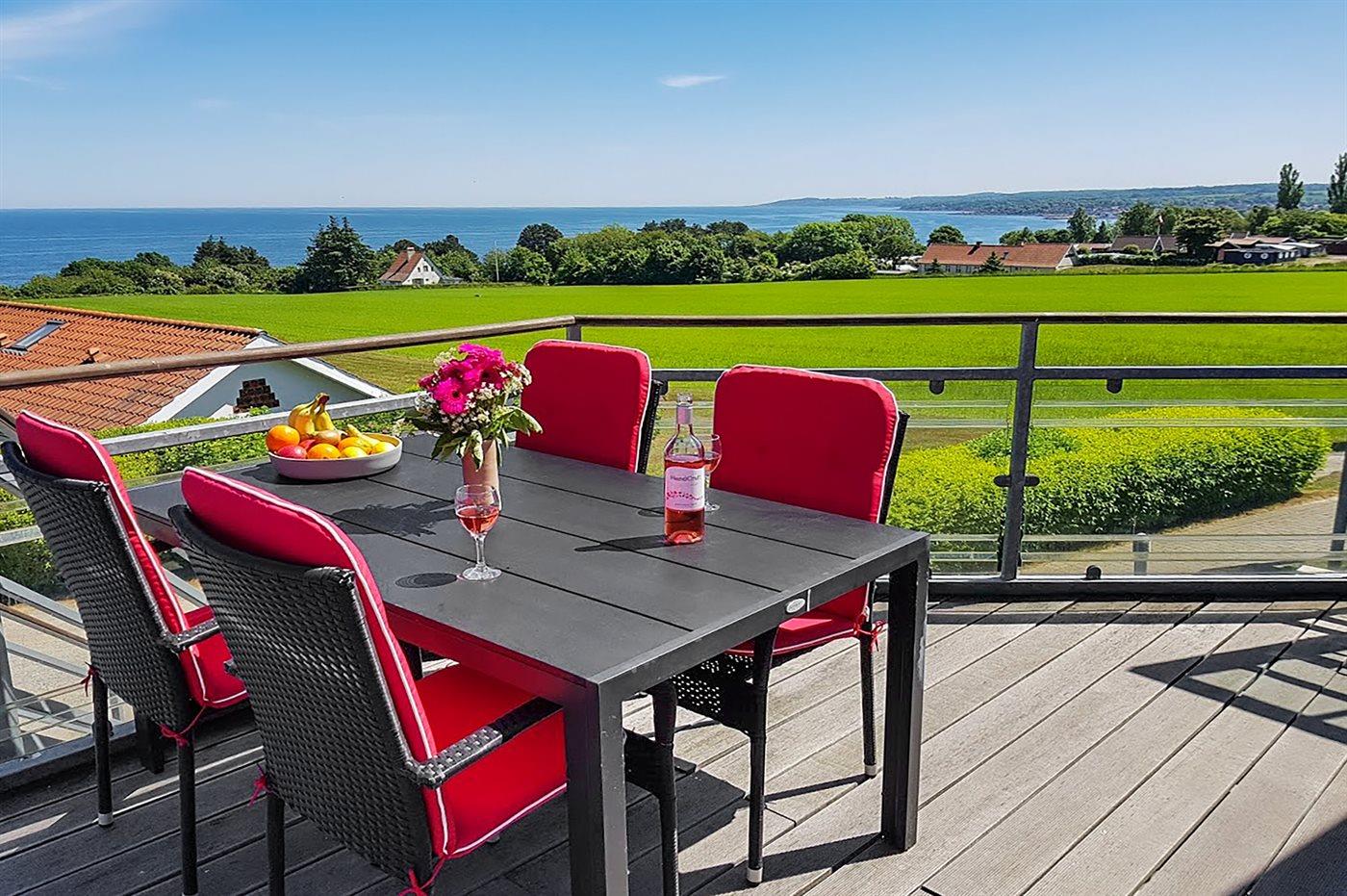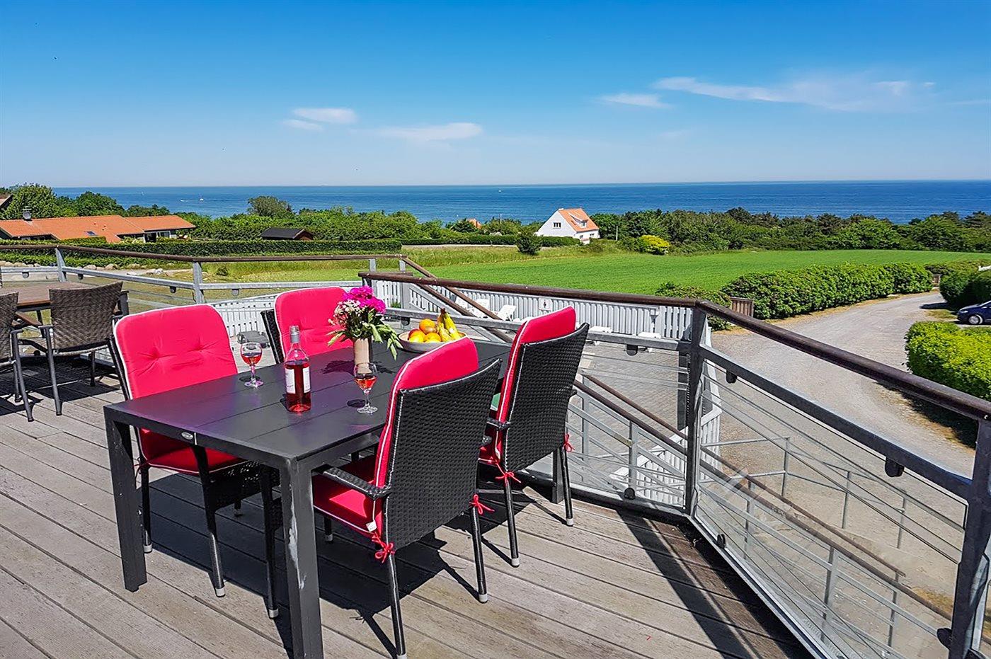 Helle Ferienwohnung mit Meerblick, Balkon und beheiztem Pool nahe Allinge in Dänemark.