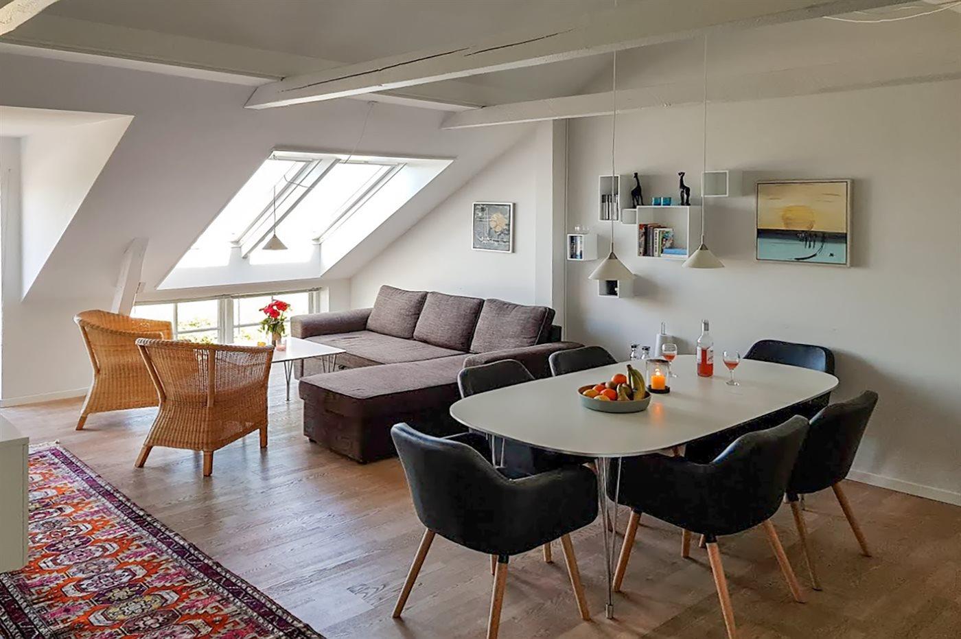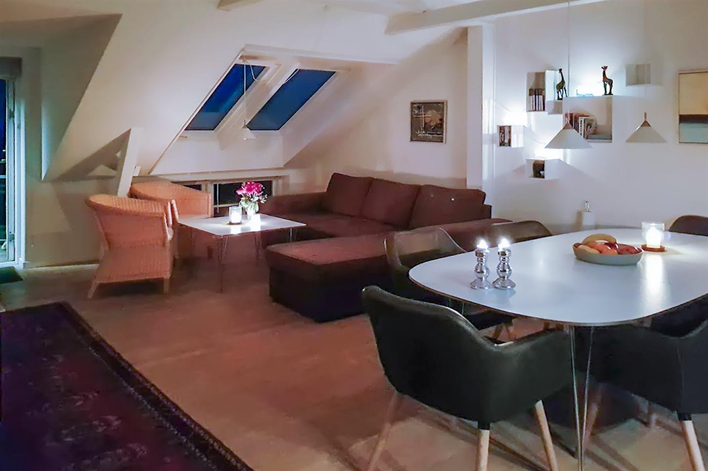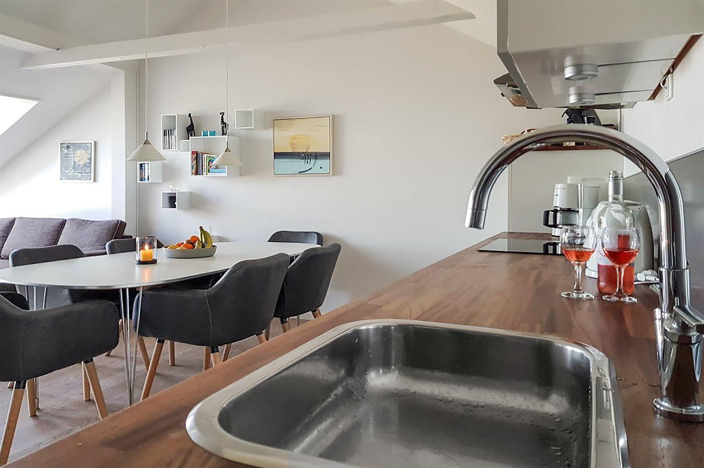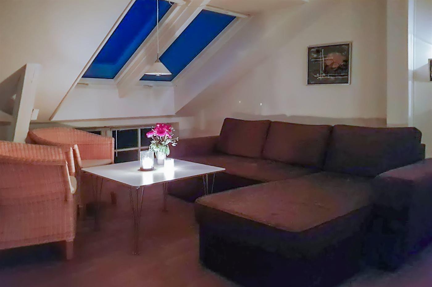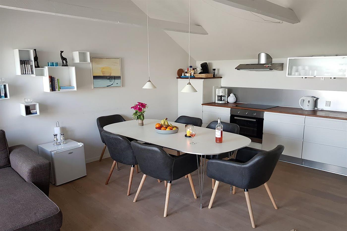 Nur 1.000 Meter von Allinge liegt diese nett eingerichtete und helle Ferienwohnung, 2006 renoviert, liegt im Obergeschoss in der ehemaligen Pension Boesvang in Sandkås. Vom herrlichen Balkon/Terrasse mit Gartenmöbeln haben Sie eine phantastische Aussicht über das Gemeinschaftsgelände mit Swimmingpool sowie dem Meer bis zur Insel Christiansø hinaus. Die Wohnung ist über eine auswendige Treppe zu erreichen.