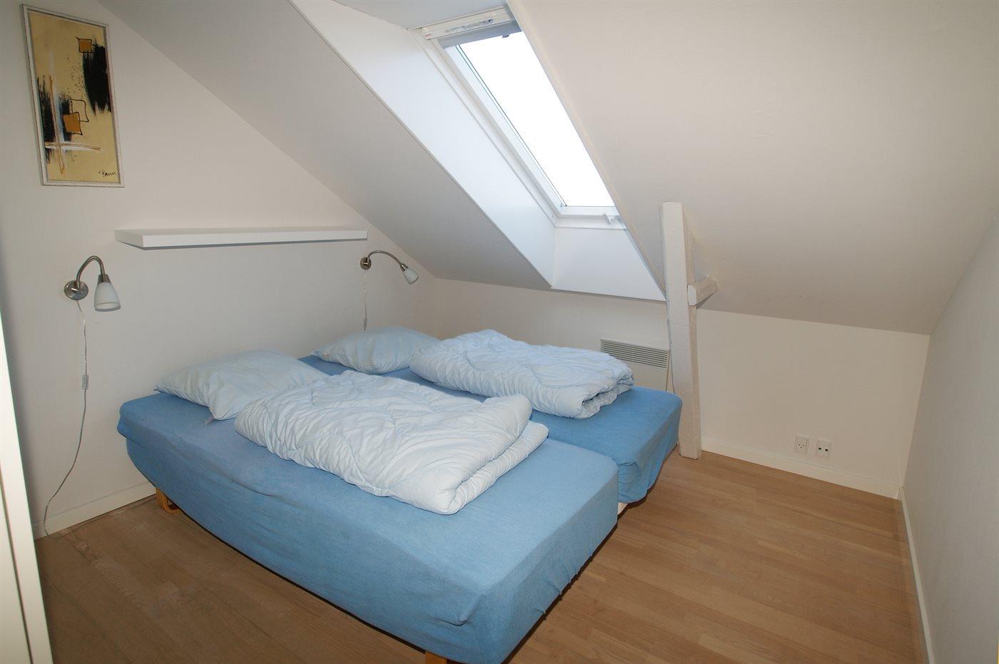 Die Schlafplätze verteilen sich auf 2 Zimmer mit Doppelbett (das eine ist ein Durchgangszimmer - siehe Grundriss). Badezimmer mit Fußbodenheizung und Glasduschnische.