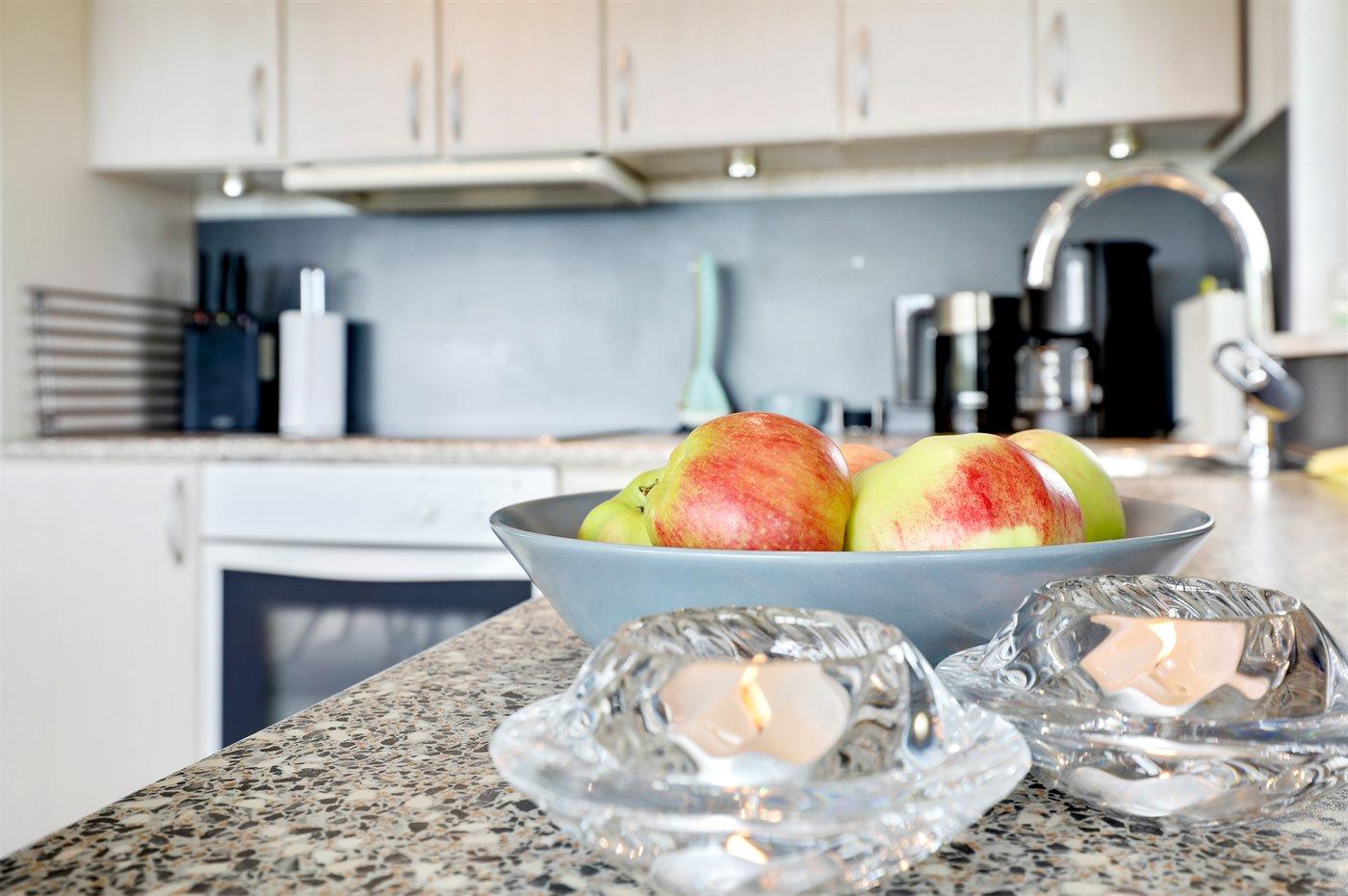 Die Küche ist mit Kühlschrank ausgestattet. Außerdem gibt es 4 Keramik-Kochfelder, Umluftofen, Mikrowelle sowie Geschirrspüler.