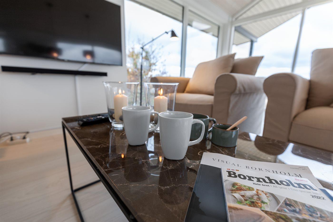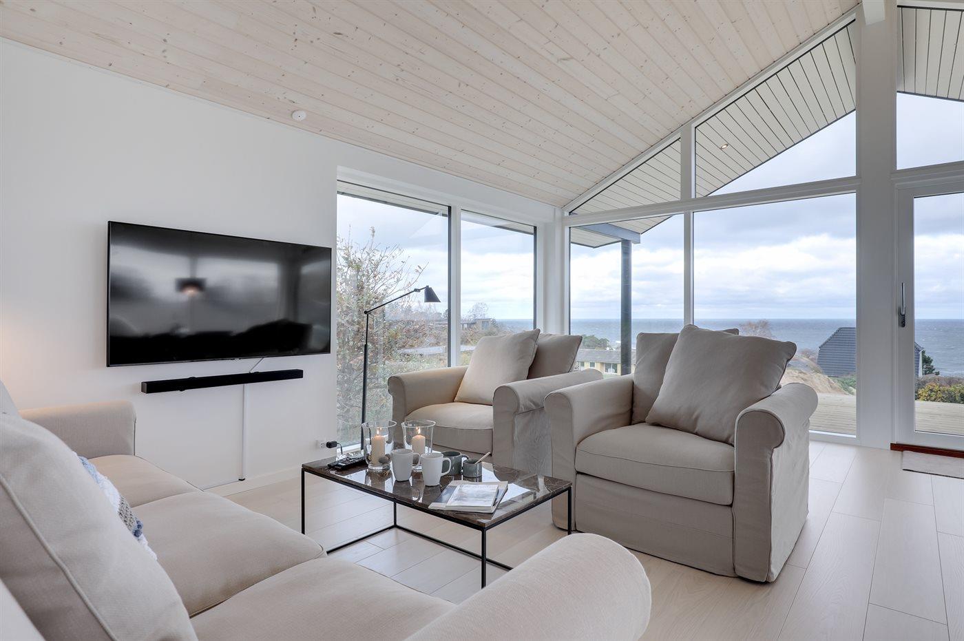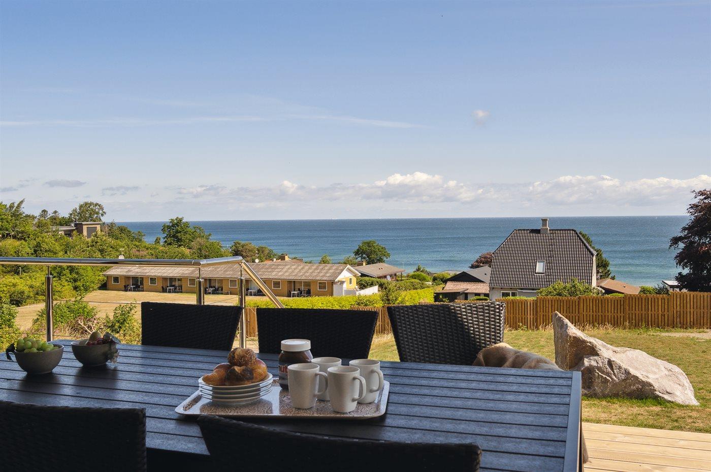 Erhöht gelegenes, großes Ferienhaus mit gen Küste zeigenden Terrassen und Ausblick auf die Ostsee. Durch die erhöhte Lage gelangt man leicht in die eindrucksvolle Dünenlandschaft, in denen fantastische Naturerlebnisse warten. Gleichzeitig erreicht man von hier die Gegend in und um das Städtchen Allinge, in der jährlich die Volksversammlung („Folkemøde“) stattfindet.