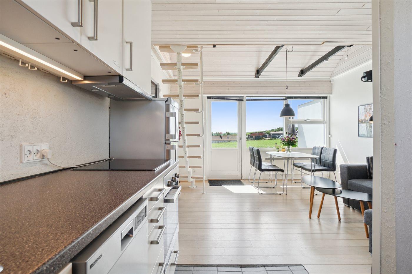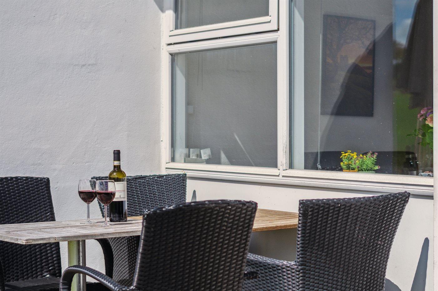 Gemütliche Ferienwohnung in Allinge mit Meerblick, Terrasse und moderner Ausstattung für entspannte Tage am Meer.