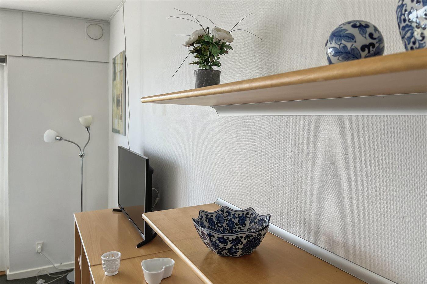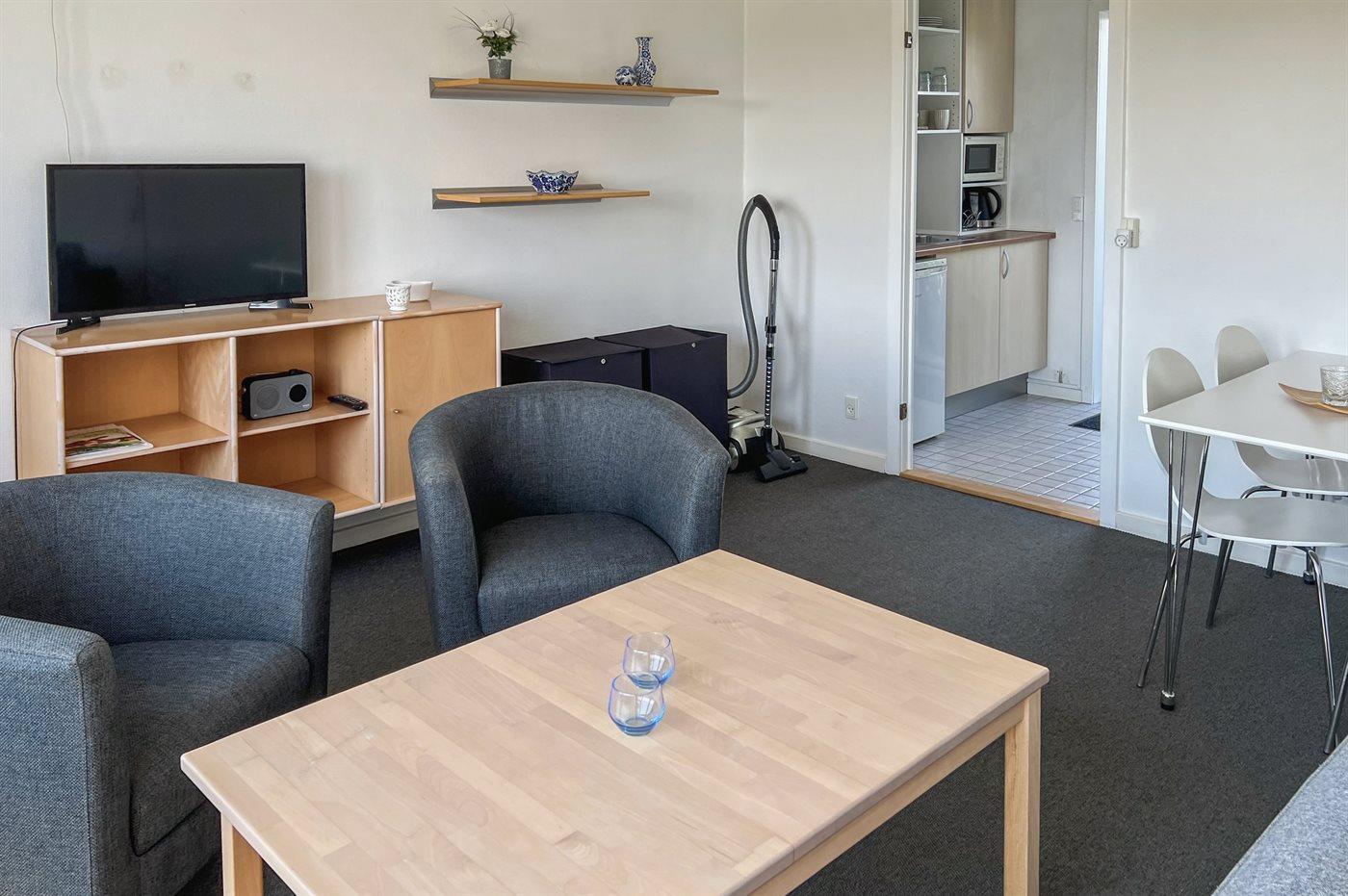 In der Ferienunterkunft gibt es einen Fernseher. 1-3 dänische Fernsehsender.