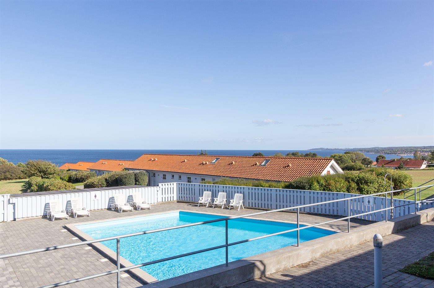 Helle Ferienwohnung mit Ostseeblick und beheiztem Pool in Allinge, ideal für 2 Personen.