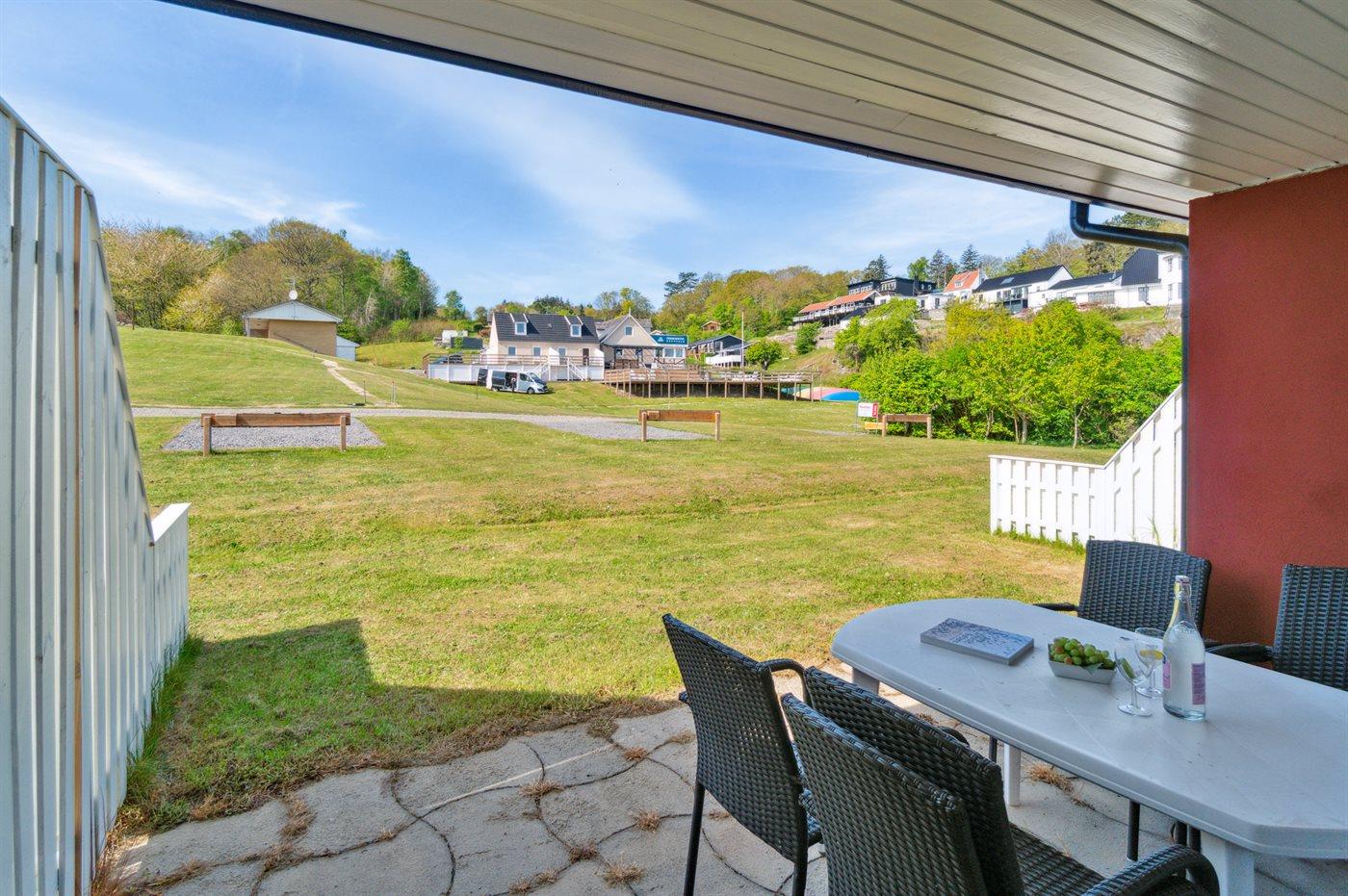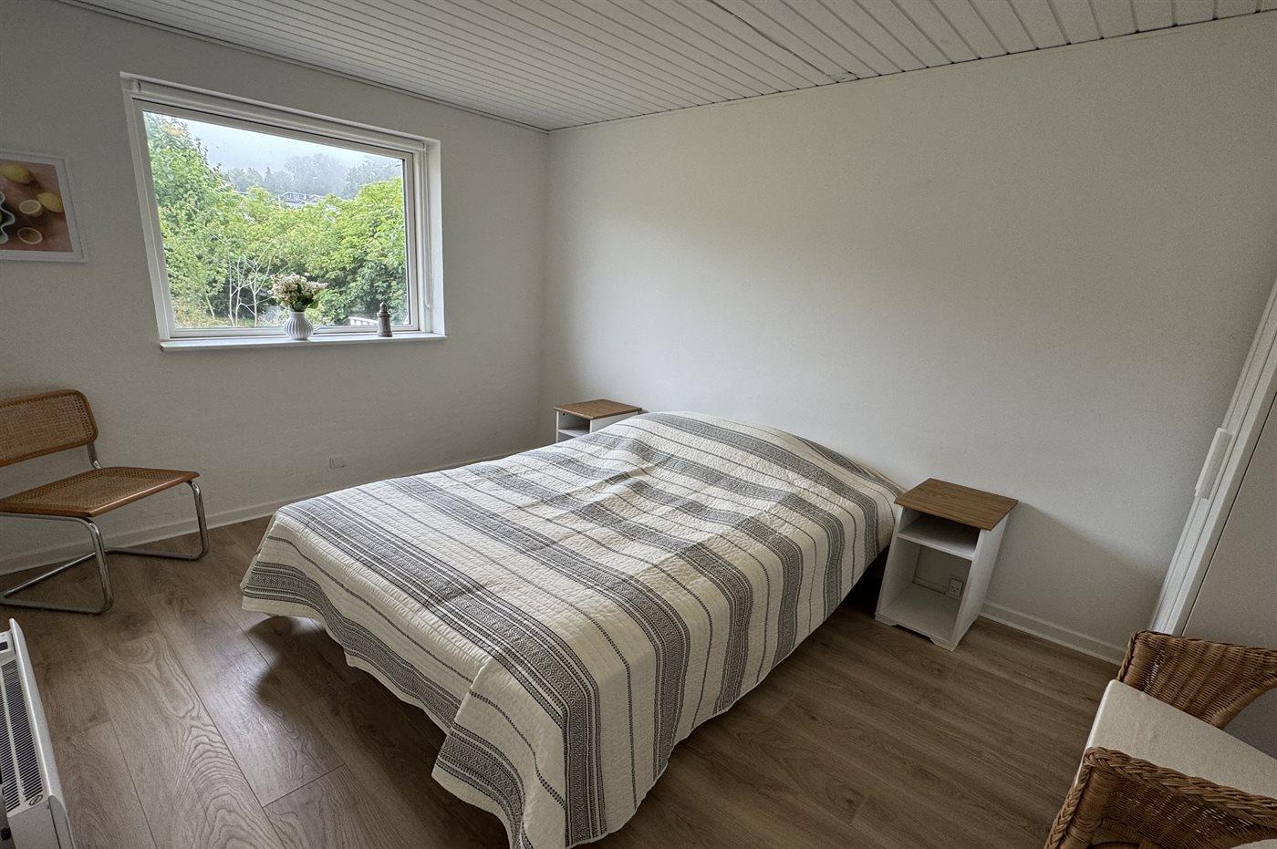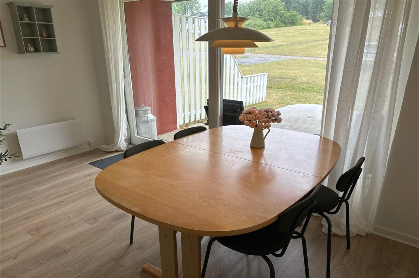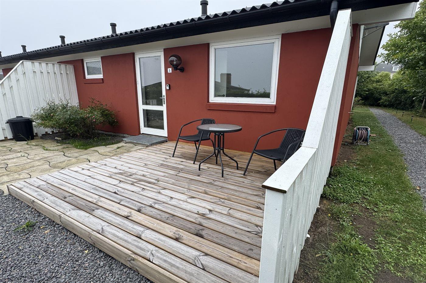 Einladende Ferienwohnung in einem kleinen Reihenhaus, gelegen in einem beliebten Ferienhausgebiet, in dem sich die nordbornholmsche Landschaft mit beeindruckenden Aussichtspunkten, mächtigen Felsformationen und idyllischen kleinen Ortschaften entfaltet – Orte, an denen man noch heute die alten Traditionen der Steinmetzkunst erahnen kann.