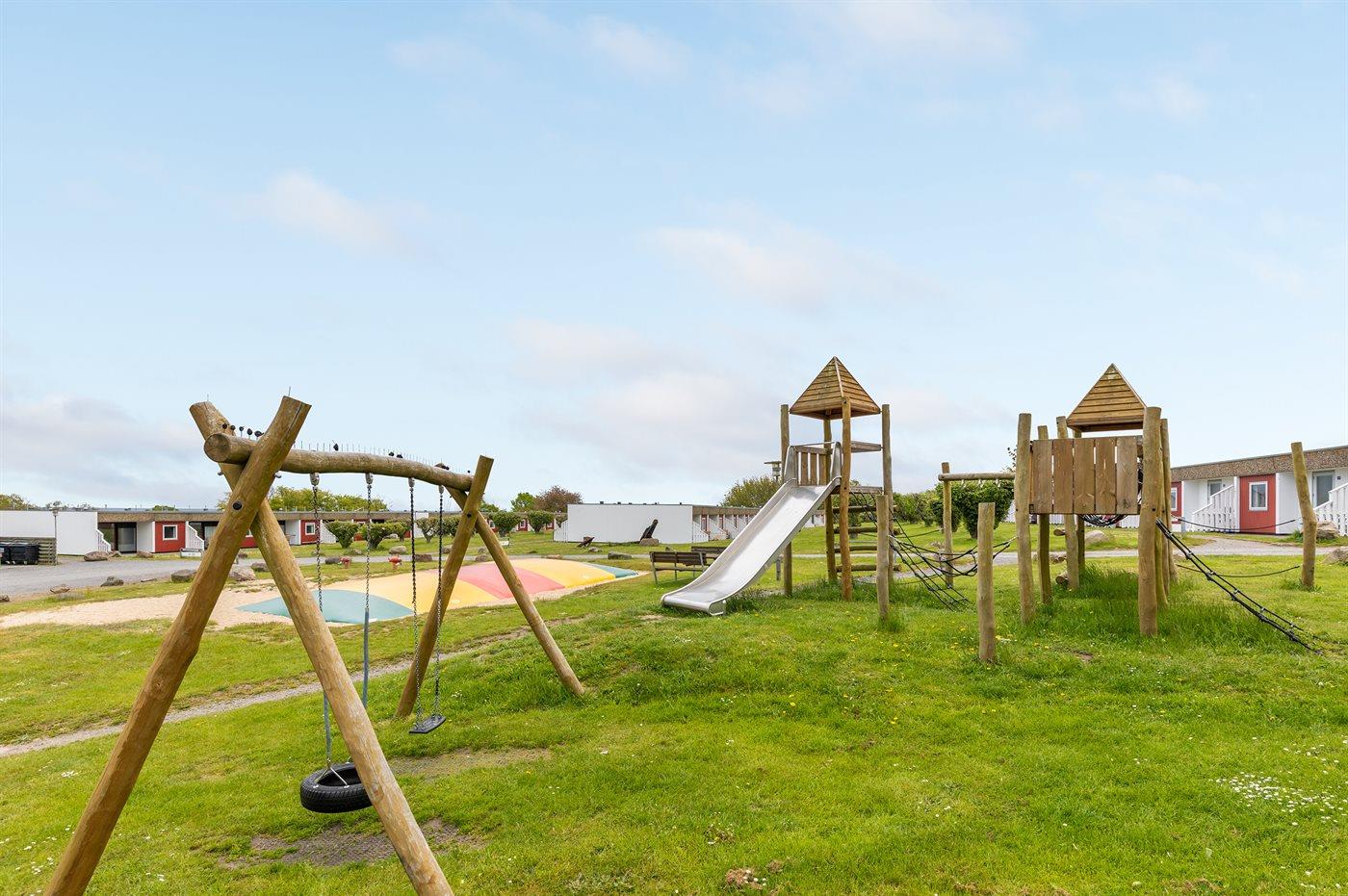 Eine besonders gepflegte Ferienwohnung im Ferienpark Æblehaven am Rande des Orts Allinge, in dem regelmäßig das Volkstreffen Folkemødet stattfindet. Das Angebot des Ferienparks umfasst unter anderem einen Tennisplatz, einen Rasen für Ballspiele, einen Spielplatz mit Hüpfburg und Klettergerüst, einen Außenswimmingpool und einen Kinderpool. Die Swimmingpools können vom 1. Juni bis zum 1. September genutzt werden.