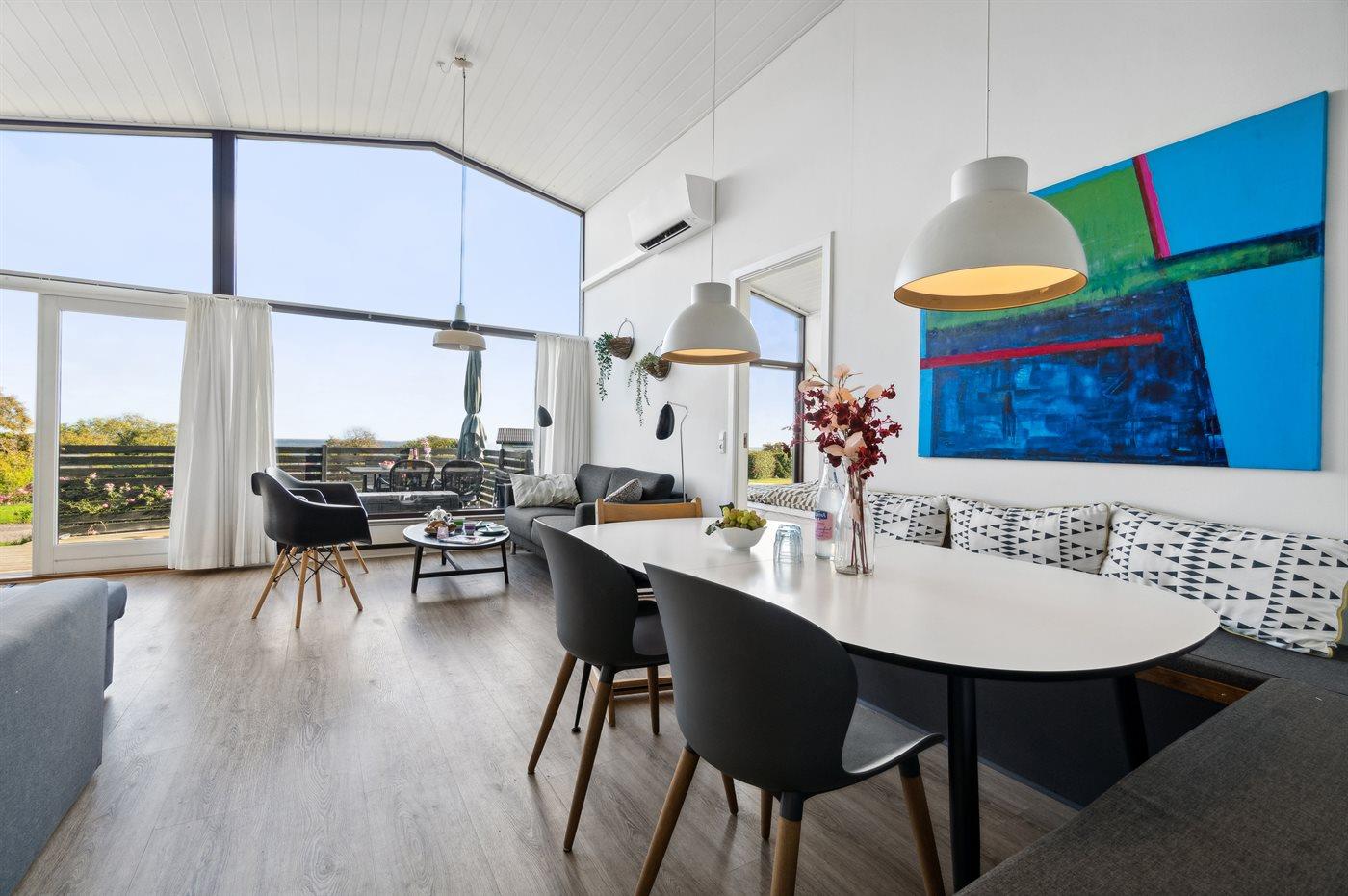 Die Wohnung befindet sich im kleinen, gemütlichen Ferienzentrum Madseløkke, wo es neben einem gemeinsamen Außenpool auch einen Bolzplatz, einen Spielturm, einen Sandkasten u.v.m. gibt, sodass sowohl kleinere Kinder als auch die etwas Älteren während des Urlaubs gemeinsam mit anderen Abenteuer erleben können. Die Wohnung ist gut gepflegt und verfügt über ein geräumiges Wohnzimmer, in dem die großen Panoramafenster für schönes Licht und einen herrlichen Blick auf die wechselnden Blautöne des Meeres sorgen. Die Möblierung ist von guter Qualität und die Küchenabteilung ist gut ausgestattet mit allem, was man für die Zubereitung eines Ferienessens benötigt.