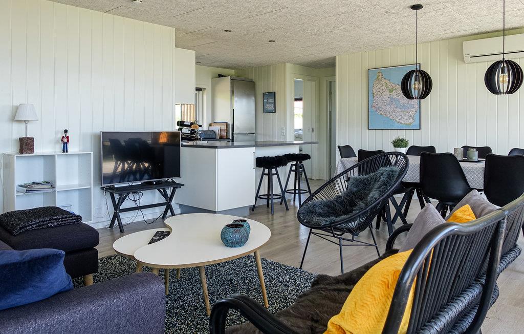 Willkommen in diesem Ferienhaus mit ansteckender Urlaubsatmosphäre. Das Herzstück des häuslichen Lebens ist das Wohnzimmer mit seinem schönen Essbereich und einer wohligen Sofalandschaft, wo u. A. TV, DVD, Xbox und Chromecast für Indoor-Entertainment sorgen. Das Wohnzimmer steht in offener Verbindung mit der gut ausgestatteten Küche, in der Ihnen bei der Zubereitung köstlicher Urlaubsgerichte keine Grenzen gesetzt sind. Die beiden Badezimmer verfügen über Dusche, WC und eine komfortable Fußbodenheizung.