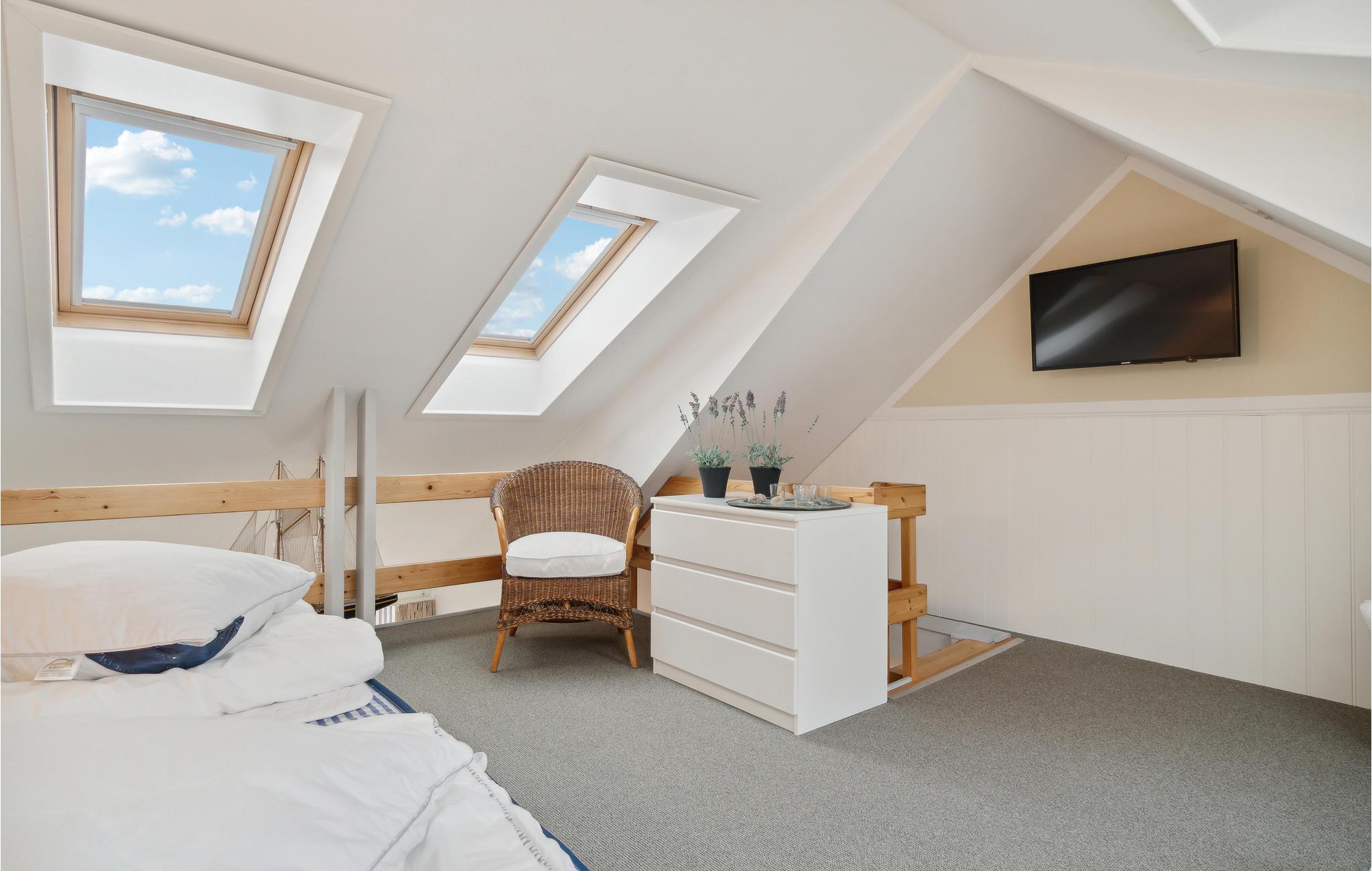 Das Herzstück des häuslichen Lebens ist das ansprechend eingerichtete Wohnzimmer mit Flat-TV und Radio/CD. In der offenen Küche mit Essbereich können Sie Ihre kulinarischen Künste entfalten. Sowohl im Schlafzimmer als auch im schönen Loft befindet sich ein Fernseher, sodass Sie einen spannenden Film an regnerischen Tagen schauen können, egal wo Sie sich aufhalten. Das Badezimmer ist mit einem Whirlpool ausgestattet - der perfekte Ort, um den Tag mit ein wenig Wellness ausklingen zu lassen. Die Wohnung hat sowohl eine südwestseitige als auch eine meerseitige Terrasse - beide ausgestattet mit Loungemöbeln - sodass Sie zu jeder Zeit ein ideales Plätzchen finden. Es ist einfach herrlich, auf der Terrasse mit Meerblick zu sitzen und einen lauen Sommerabend bei einem guten Getränk ausklingen zu lassen. Sollten Sie mit mehreren Paaren oder befreundeten Familien verreisen, können Sie je nach Verfügbarkeit weitere Ferienwohnungen in der schönen Ferienanlage hinzubuchen.