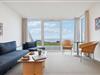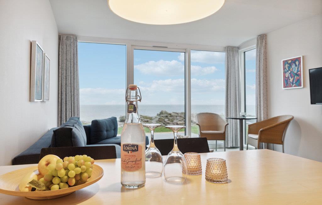 Der Gemeinschaftsbereich dieses Apartments ist das Wohnzimmer mit TV und einer Schlafcouch für eine Person, wo Sie zusammen eine gesellige Zeit verbringen können. Das Wohnzimmer steht in offener Verbindung mit der Küche, wo Sie gemeinsam köstliche Gerichte zubereiten können. Das Badezimmer verfügt über eine Fußbodenheizung und ein Spabad, in dem Sie sich nach einem langen, aktiven Urlaubstag bestens erholen können. Die Wohnung verfügt über eine kleine Terrasse mit Outdoormöbeln und herrlichem Panoramablick auf das Meer – ein toller Platz, um Ihren Kaffee am Morgen und ein gutes Glas Wein am Abend zu genießen. Sollten Sie mit mehreren Paaren oder befreundeten Familien verreisen, können Sie je nach Verfügbarkeit weitere Ferienwohnungen in der schönen Ferienanlage hinzubuchen.