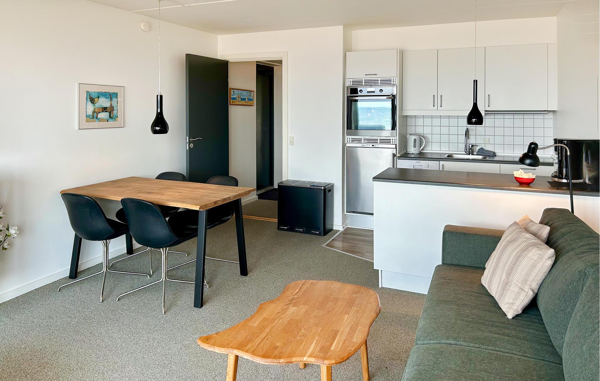 Der Gemeinschaftsbereich dieses Apartments ist das Wohnzimmer mit Flatscreen-TV und einer Doppelschlafcouch, wo Sie zusammen eine gesellige Zeit verbringen können. Das Wohnzimmer steht in offener Verbindung mit der geräumigen und gut ausgestatteten Küche. Vom Schlafzimmer aus haben Sie Zugang zu einer nach Südwesten ausgerichteten Terrasse mit Gartenmöbeln – der perfekte Ort, um Ihren Morgenkaffee und abends ein schönes Glas Wein zu genießen. Sollten Sie mit mehreren Paaren oder befreundeten Familien verreisen, können Sie je nach Verfügbarkeit weitere Ferienwohnungen in der schönen Ferienanlage hinzubuchen.